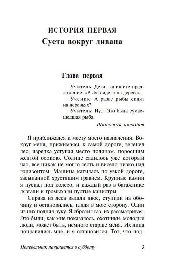 «Понедельник начинается в субботу. Сказка для научных работников младшего возраста» — под таким заголовком в 1965 году вышла книга, которой зачитывались и продолжают зачитываться все новые и новые поколения. Герои ее, сотрудники НИИЧАВО, — Научно‑исследовательского института Чародейства и Волшебства, — маги и магистры, молодые энтузиасты, горящие желанием познать мир и преобразовать его наилучшим образом. На этом пути их ждет множество удивительных приключений и поразительных открытий. Машина времени и изба на курьих ножках, выращивание искусственного человека и усмирение выпущенного из бутылки джинна — читатель не заскучает!