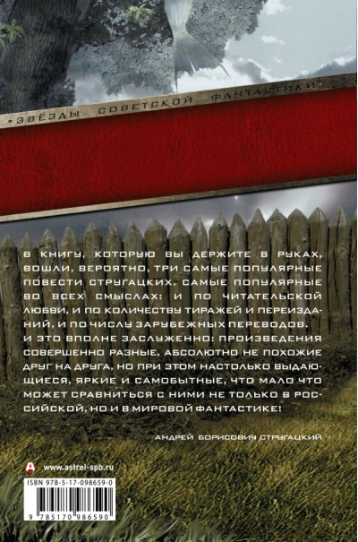 В книгу, которую вы держите в руках, вошли, вероятно, три самые популярные повести Стругацких. Самые популярные во всех смыслах: и по читательской любви, и по количеству тиражей и переизданий, и по числу зарубежных переводов. И это вполне заслуженно: произведения совершенно разные, абсолютно не похожие друг на друга, но при этом настолько выдающиеся, яркие и самобытные, что мало что может сравниться с ними не только в российской, но и в мировой фантастике!