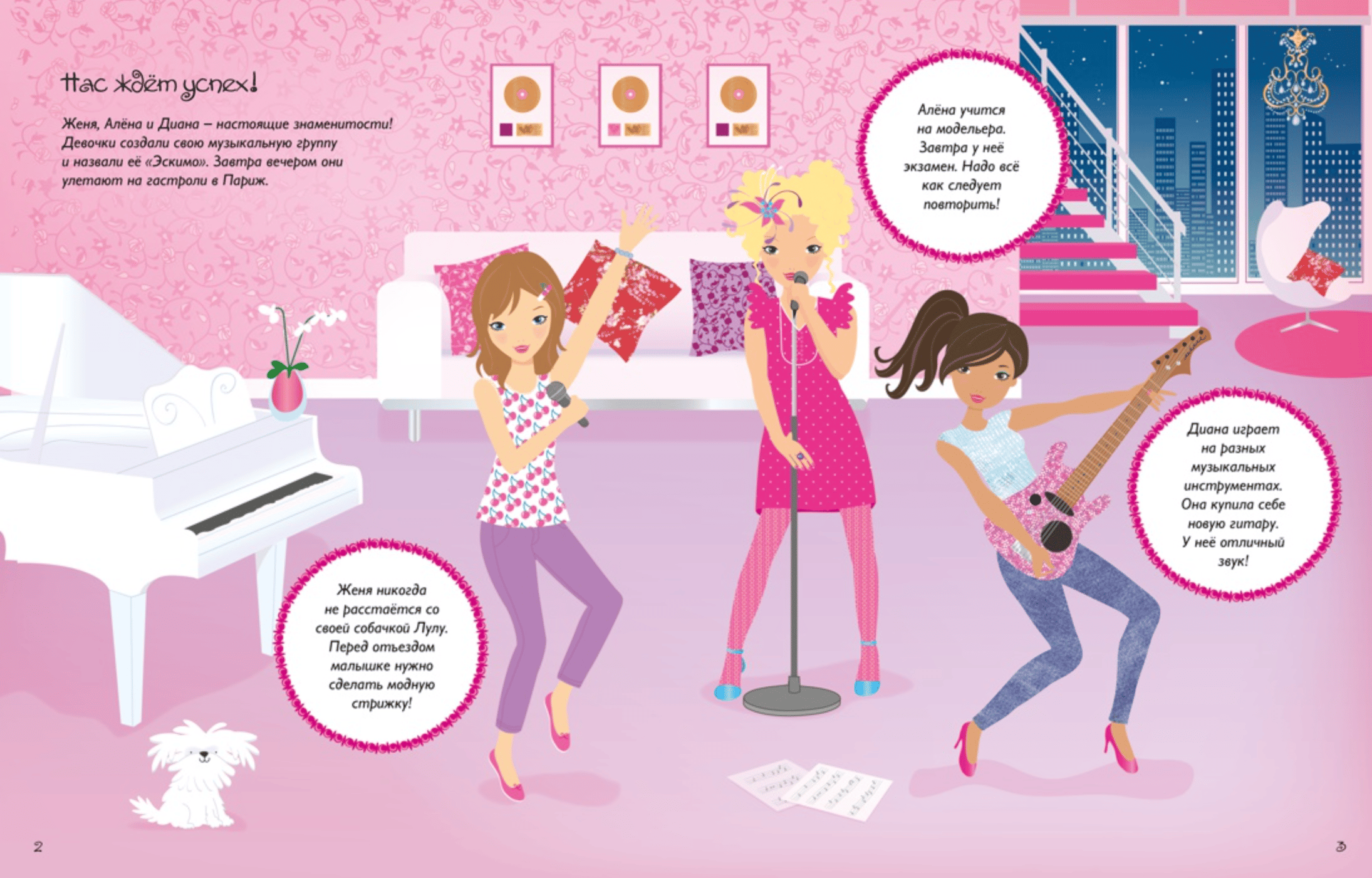 Все девчонки очень любят наряжаться! А ещё они с удовольствием поют и танцуют. Им нравится путешествовать, узнавать что-то новое и вообще во всём принимать активное участие… Эта красивая серия книг с наклейками станет отличным подарком для нашей маленькой читательницы, потому что здесь собраны все самые интересные темы! Весёлая игра поможет вырасти ей умной и любознательной, отзывчивой и доброй.