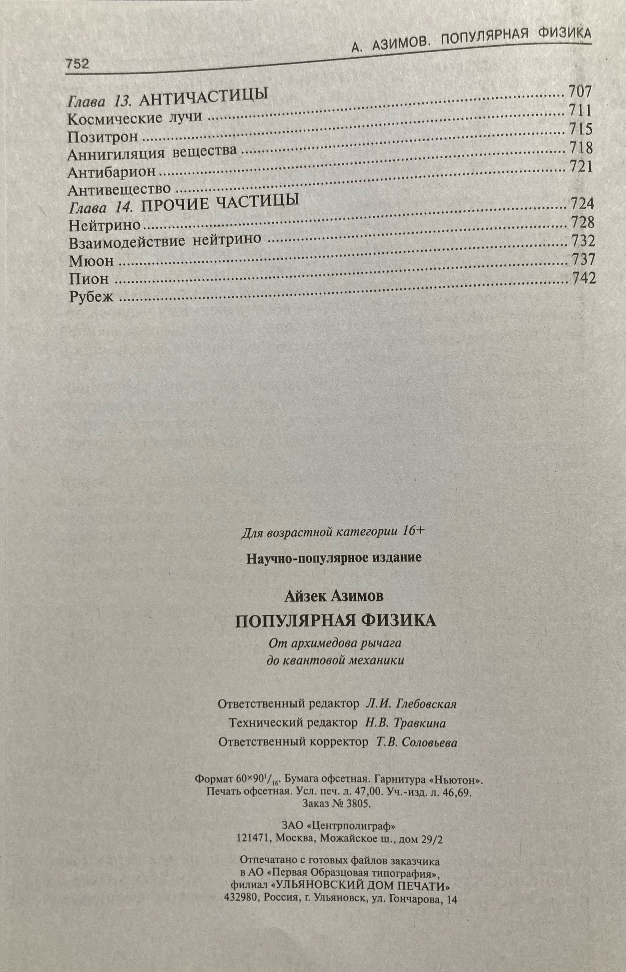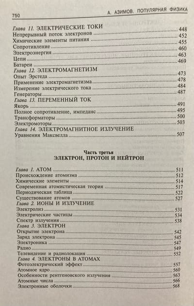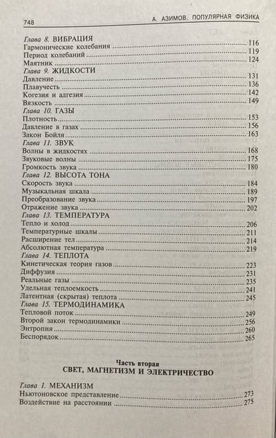 Эта книга состоит из трех частей и охватывает период истории физики от Древней Греции и до середины XX века. В последней части Азимов подробно освещает основное событие в XX столетии — открытие бесконечно малых частиц и волн, предлагает оригинальный взгляд на взаимодействие технического прогресса и общества в целом. Книга расширяет представления о науке, помогает понять и полюбить физику.