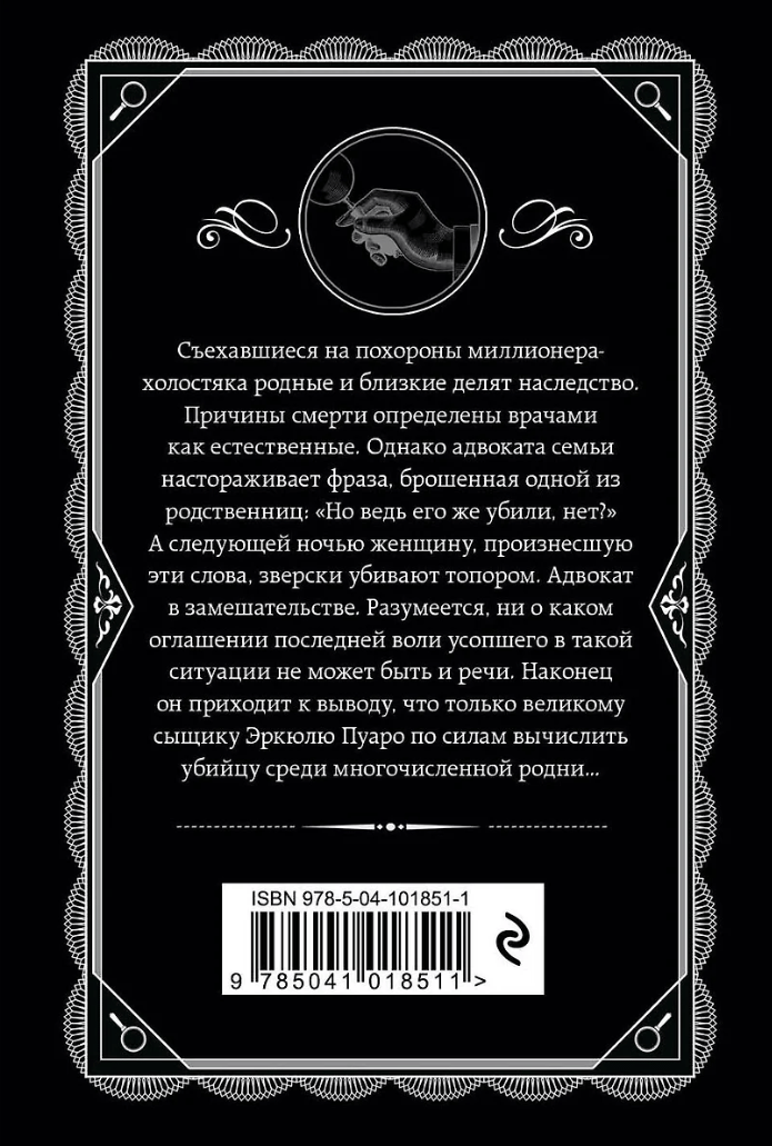 Съехавшиеся на похороны миллионера-холостяка родные и близкие делят наследство. Причины смерти определены врачами как естественные. Однако адвоката семьи настораживает фраза, брошенная одной из родственниц: "Но ведь его же убили, нет?". А следующей ночью женщину, произнесшую эти слова, зверски убивают топором. Адвокат в замешательстве. Разумеется, ни о каком оглашении последней воли усопшего в такой ситуации не может быть и речи. Наконец, он приходит к выводу, что только великому сыщику Эркюлю Пуаро по силам вычислить убийцу среди многочисленной родни...