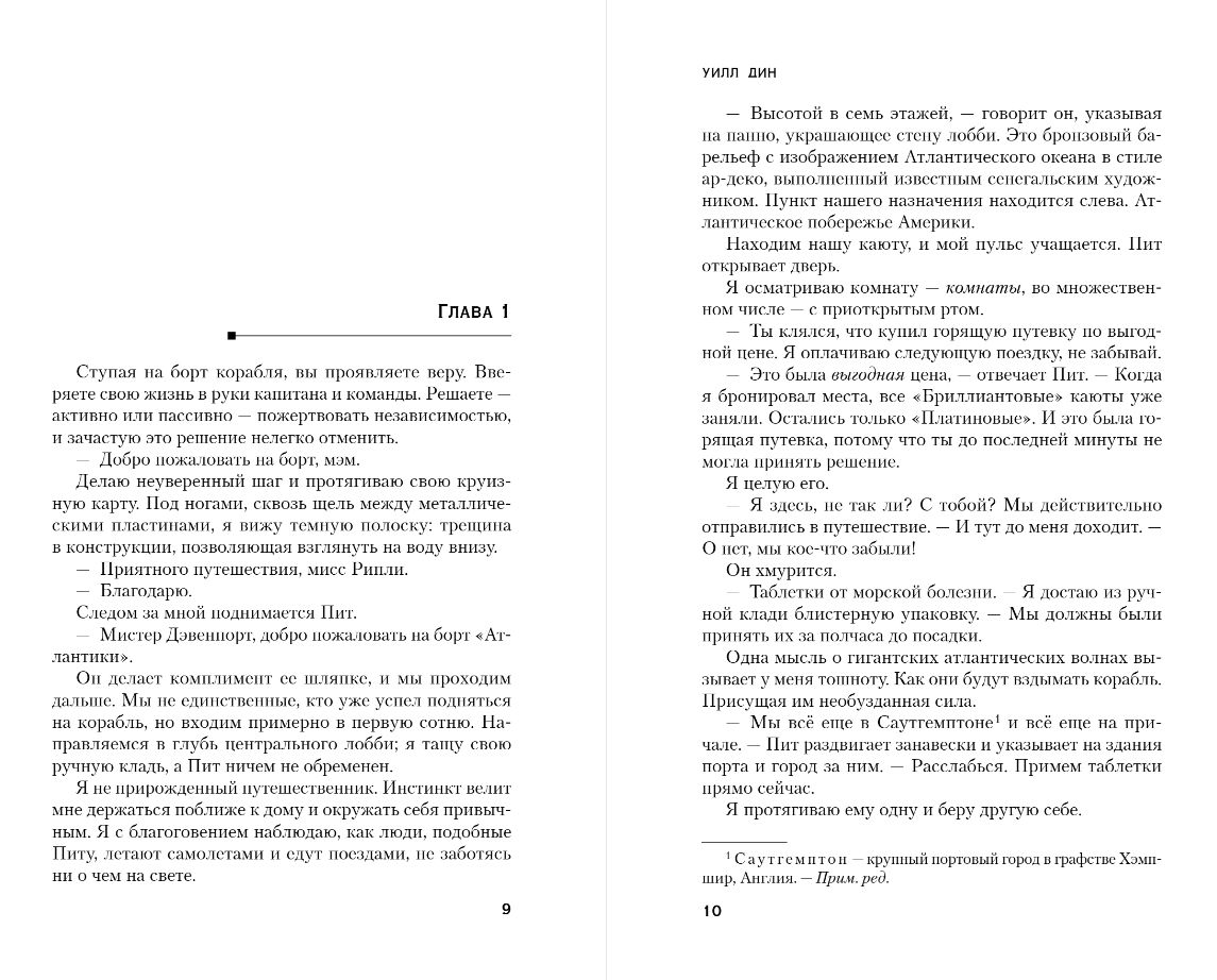 Пит обещал мне незабываемый романтический отпуск в океане. Впереди нас ждало семь дней на шикарном круизном корабле. Но на следующий день после отплытия я проснулась одна в нашей постели. Это показалось мне странным, но куда больше насторожило то, что двери всех кают были открыты нараспашку. В ресторанах ни души, все палубы пусты, и, что самое страшное, капитанский мостик остался без присмотра…
