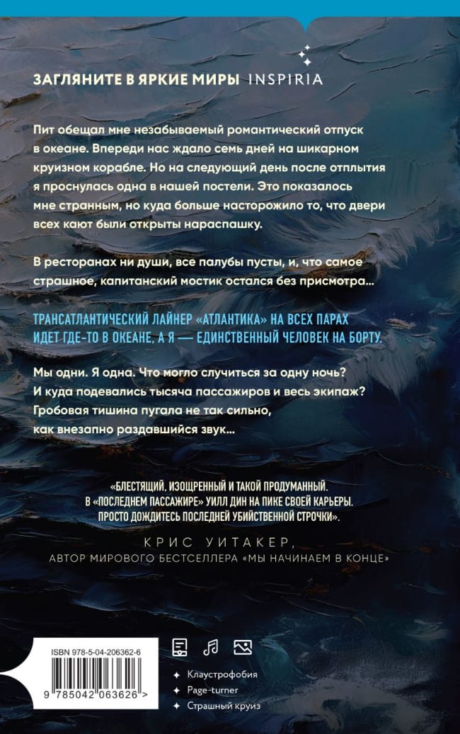 Трансатлантический лайнер «Атлантика» на всех парах идет где-то в океане, а я — единственный человек на борту. Мы одни. Я одна. Что могло случится за эту ночь? И куда подевалась тысяча пассажиров и весь экипаж? Гробовая тишина пугала не так сильно, как внезапно раздавшийся звук…