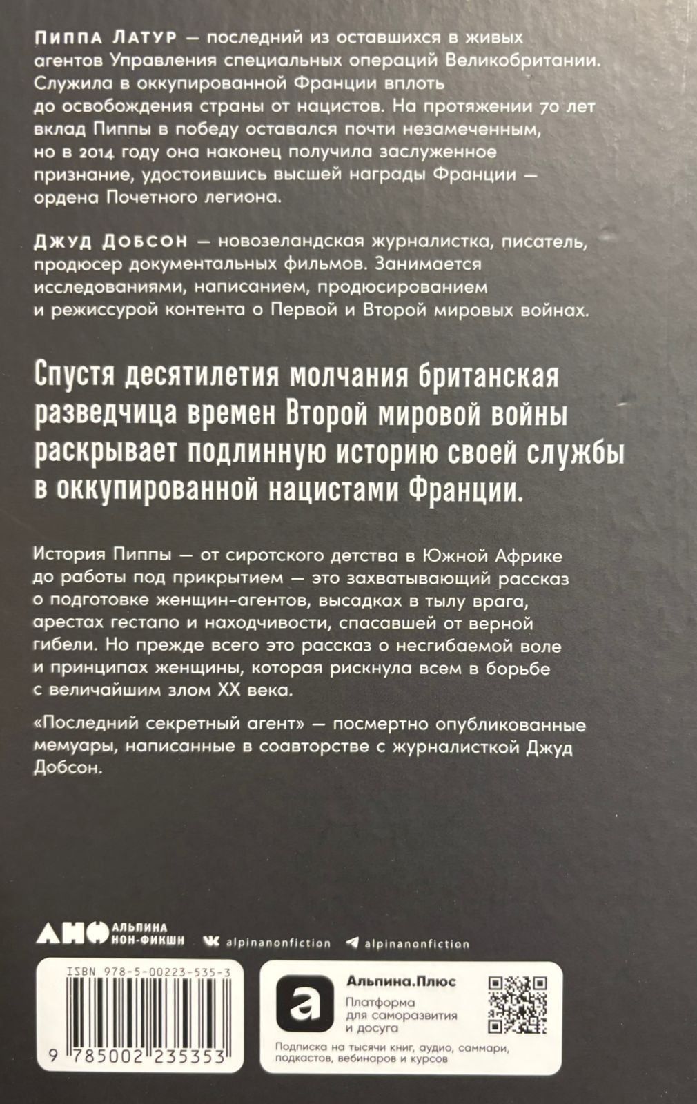 Захватывающий рассказ Пиппы Латур о специальной подготовке женщин-агентов, высадке во вражеском тылу, об арестах гестапо, о находчивости в критических ситуациях погружает в атмосферу военного времени. Кроме того, в книге раскрываются малоизвестные аспекты сотрудничества британской разведки и французского Сопротивления.