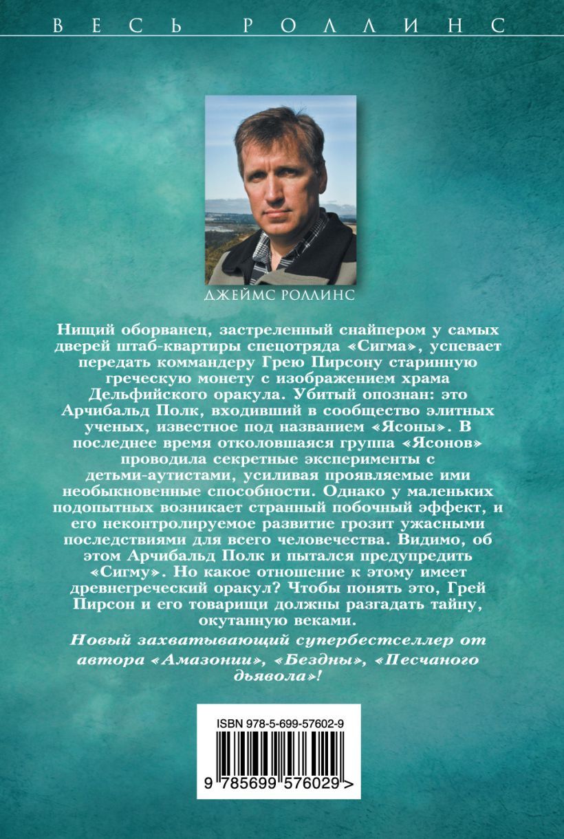 Нищий оборванец, застреленный снайпером у самых дверей штаб-квартиры спецотряда «Сигма», успевает передать коммандеру Грею Пирсону старинную греческую монету с изображением храма Дельфийского оракула. Убитый опознан: это Арчибальд Полк, входивший в сообщество элитных ученых, известное под названием «Ясоны». В последнее время отколовшаяся группа «Ясонов» проводила секретные эксперименты с детьми-аутистами, усиливая проявляемые ими необыкновенные способности. Однако у маленьких подопытных возникает странный побочный эффект, и его неконтролируемое развитие грозит ужасными последствиями для всего человечества. Видимо, об этом Арчибальд Полк и пытался предупредить «Сигму». Но какое отношение к этому имеет древнегреческий оракул? Чтобы понять это, Грей Пирсон и его товарищи должны разгадать тайну, окутанную веками.