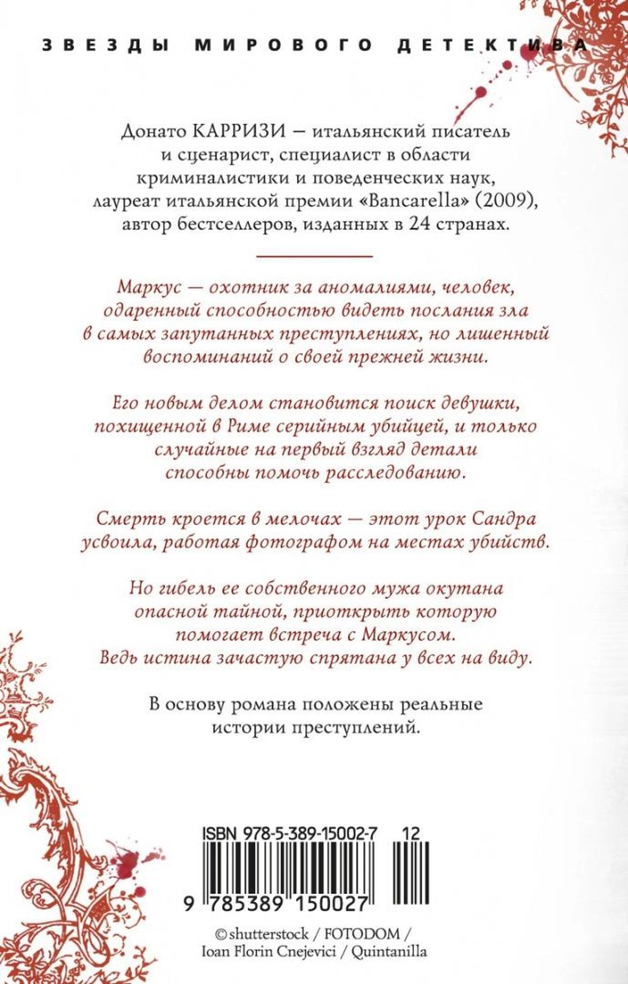 Маркус – охотник за аномалиями, человек, одаренный способностью видеть послания зла в самых запутанных преступлениях, но лишенный воспоминаний о своей прежней жизни. Его новым делом становится поиск девушки, захваченной серийным убийцей в Риме, и только случайные на первый взгляд детали способны помочь расследованию. Смерть кроется в мелочах – этот урок Сандра усвоила, работая фотографом на местах убийств. Но гибель ее собственного мужа покрыта опасной тайной, важным ключом к которой становится встреча с Маркусом. Ведь истина зачастую спрятана у всех на виду. В основу романа положены реальные истории преступлений.