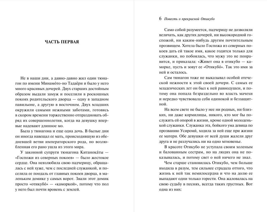 Старинная японская повесть о прекрасной Отикубо написана сказочным гладким языком, полна чудесными образами, красотой, тонким юмором, нежностью и хрупкостью. Читающий ее получит истинное наслаждение от яркой и красочной атмосферы загадочной Страны Восходящего Солнца. Этот шедевр древней классики дает возможность прикоснуться к древним традициям, познакомиться с нравами и бытом Японии десятого века. В насыщенной красочными подробностями и тонкими поэтичными наблюдениями повести благодаря чуду любви побеждает добро и торжествует справедливость.