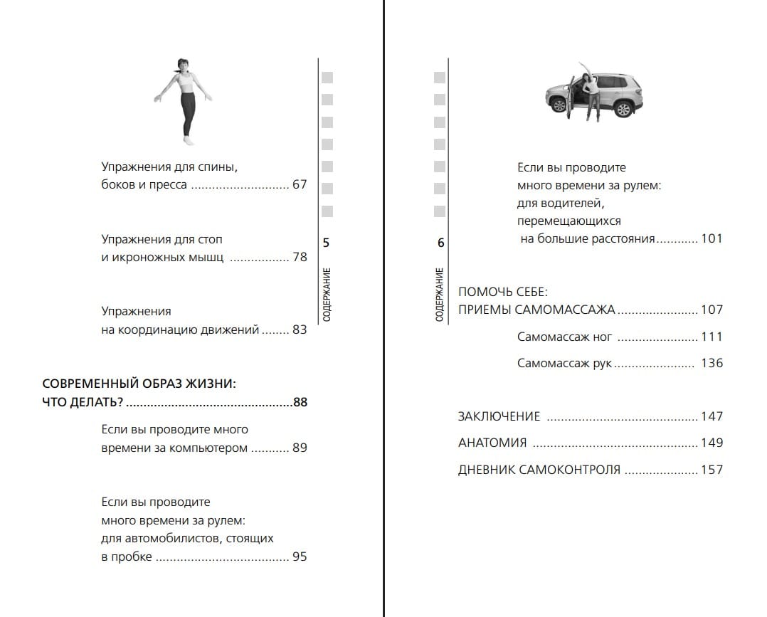 - более 50 упражнений для восстановления подвижности спины и суставов;