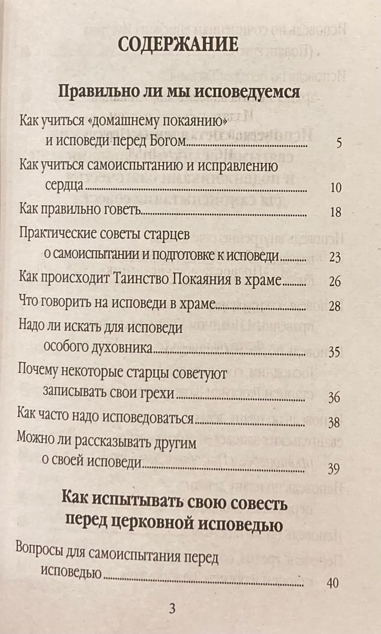 Практические советы русских святых, старцев, подвижников благочестия о подготовке к исповеди Перечень грехов с их объяснением. Содержание: Правильно ли мы исповедуемся Как испытывать свою совесть перед церковной исповедью Исповеди, составленные русскими святыми, великими старцами и подвижниками благочестия для самоиспытания совести