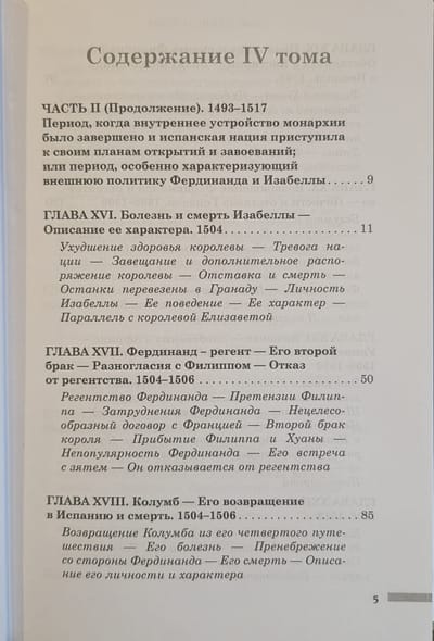 Во втором томе второй части описаны заключительные события с 1504 по 1517 год: смерть королевы Изабеллы, вопросы регентства Кастилии, Камбрейская лига, завоевание королевства Наварра, смерть короля Фердинанда и вступление в права принца Карла, будущего императора Карла V. Кроме того, дается подробный обзор и анализ результатов правления Католических королей.