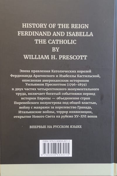 Монументальный труд знаменитого американского историка XIX в. У.Х. Прескотта (1796-1859) «Правление Фердинанда и Изабеллы» посвящен интереснейшей эпохе перехода Европы из Средневековья в эру расцвета и является основой для исследования этого важного периода.
