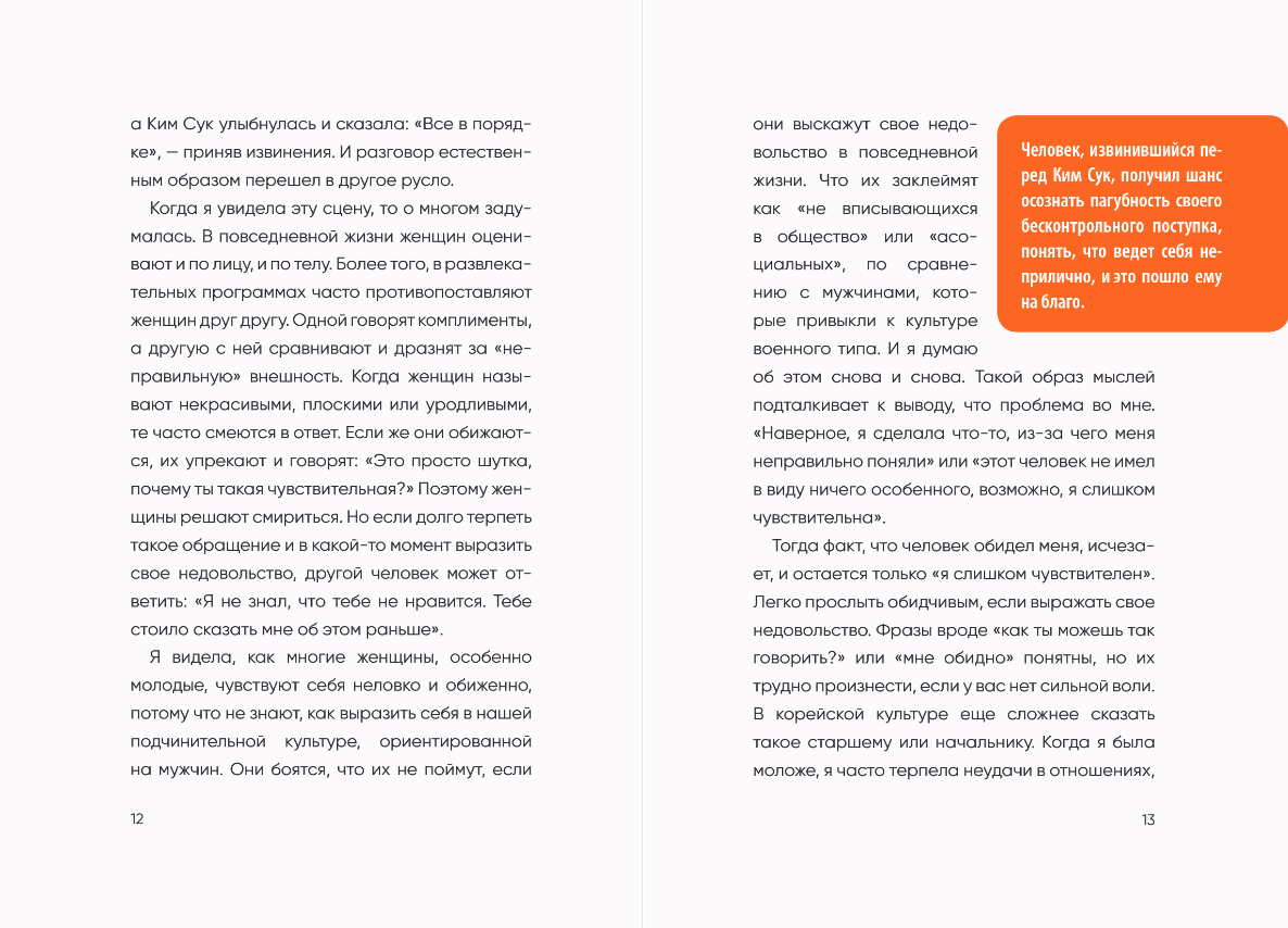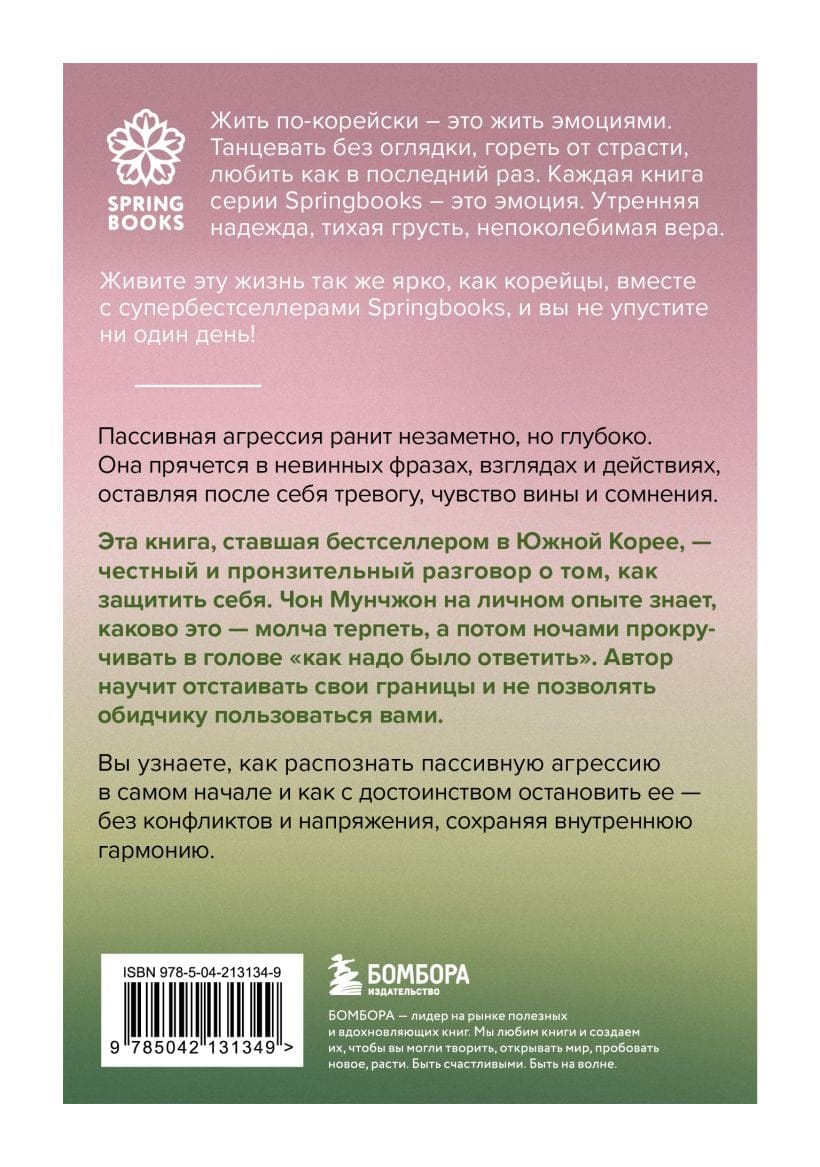 Эта книга, ставшая бестселлером в Южной Корее, — честный и пронзительный разговор о том, как защитить себя. Чон Мунчжон на личном опыте знает, каково это — молча терпеть, а потом ночами прокручивать в голове, «как надо было ответить». Автор научит отстаивать свои границы и не позволять обидчику пользоваться вами.