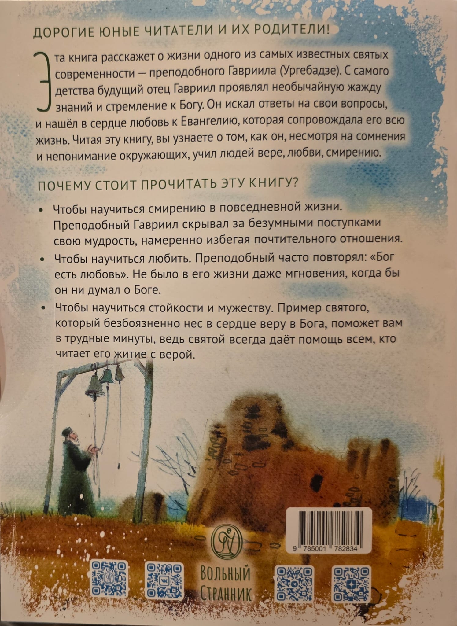 Эта книга расскажет о жизни одного из самых известных святых современности — преподобного Гавриила (Ургебадзе). С самого детства будущий отец Гавриил проявлял необычайную жажду знаний и стремление к Богу. Он искал ответы на свои вопросы, и нашёл в сердце любовь к Евангелию, которая сопровождала его всю жизнь. Читая эту книгу, вы узнаете о том, как он, несмотря на сомнения и непонимание окружающих, учил людей вере, любви, смирению.