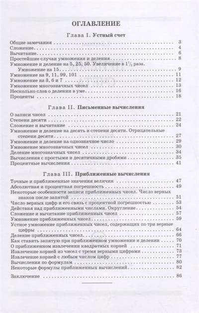 Знаете ли вы, как умножить или поделить на 25, не используя калькулятор? А как умножать в уме многозначные числа? Сможете ли быстро решить длинный пример? Умеете находить приблизительные корни от десятичных дробей? Книга перед вами поможет вам научиться этому и многому другому. С ее помощью вы освоите базовые принципы удобного устного и письменного счета. Здесь перечислены все необходимые правила для умножения и деления многозначных чисел, простых и десятичных дробей, а также квадратных корней и процентных задач. Изучив все приемы, вы поймете, как ускорить самые простые вычисления, с которыми вы сталкиваетесь ежедневно: рассчитывая бюджет или совершая покупки в магазине. Книга написана доступным языком и не требует специальных знаний. Все примеры разбираются подробно, но для большей эффективности рекомендуется решать их самостоятельно.