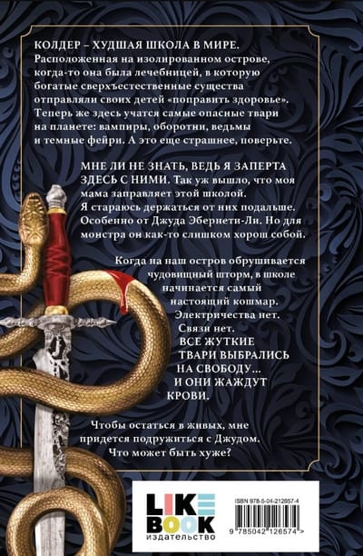 Колдер – худшая школа в мире. Расположенная на изолированном острове, когда-то она была лечебницей, в которую богатые сверхъестественные существа отправляли своих детей "поправить здоровье". Теперь же здесь учатся самые опасные твари на планете: вампиры, оборотни, ведьмы и темные фейри. А это еще страшнее, поверьте.