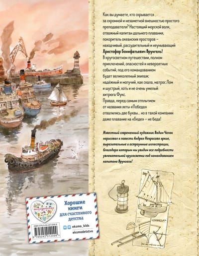 Стоит открыть эту книгу, как в ушах зашелестит плеск морских волн и сквозь шум ветра донесутся волнующие воображение команды: «Право руля! Полный вперёд!» Юмористическая повесть «Приключения капитана Врунгеля», созданная русским советским писателем, моряком и путешественником Андреем Сергеевичем Некрасовым, не теряет своей популярности почти столетие. И немудрено! В ней есть всё, что обожают юные читатели: дальние странствия, необыкновенные приключения, коварные злодеи и великолепный экипаж яхты «Беда»: опытный морской волк, строгий, но справедливый капитан Врунгель, сильный и преданный старший помощник Лом и хитроумный, находчивый матрос Фукс. Какие бы испытания ни вставали перед отважными героями, друзья выходят из них с честью благодаря смекалке, оптимизму и крепкой дружбе.