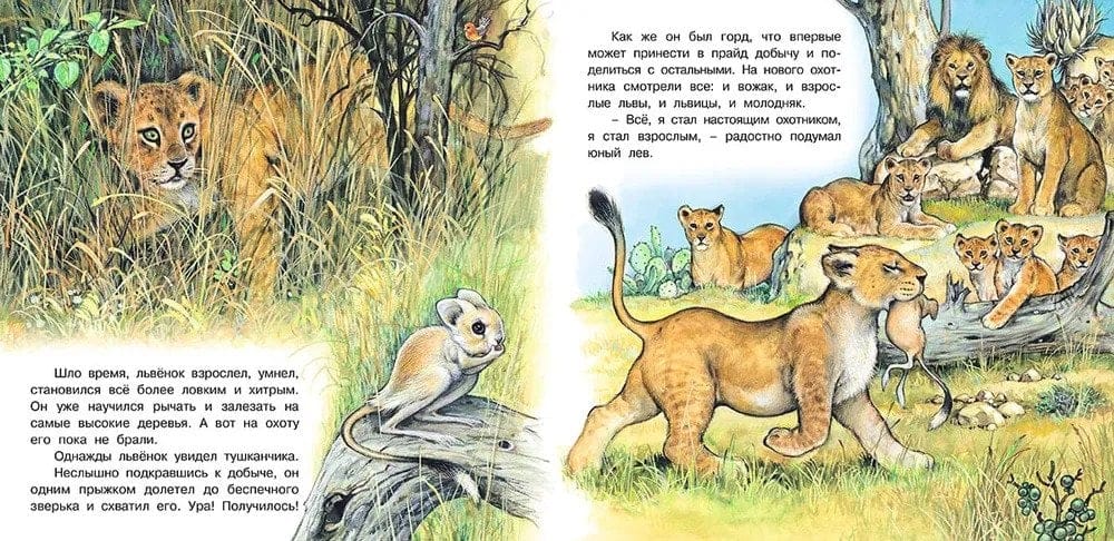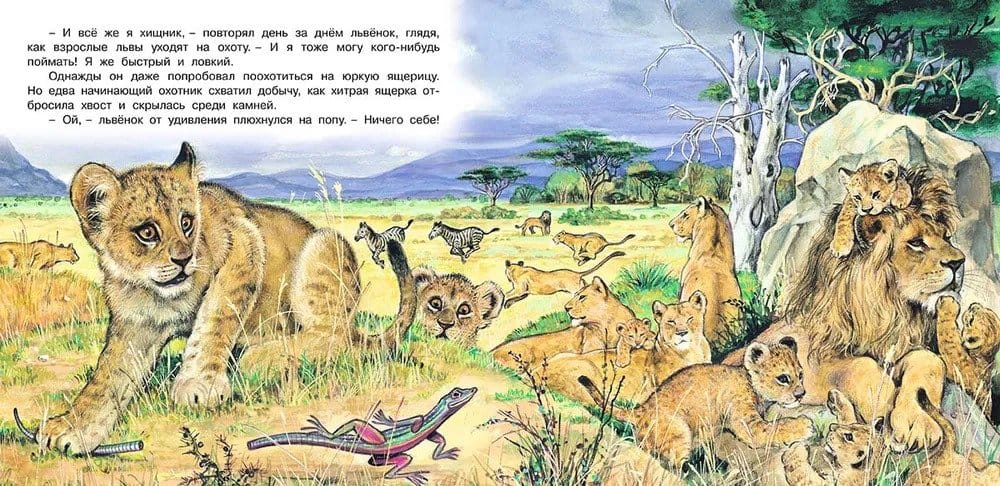 Читатель книги узнает много нового, например, что жизнь льва - самой крупной хищной кошки Африки совсем не безоблачна, и тоже полна неожиданных опасных встреч, особенно если он ещё маленький.