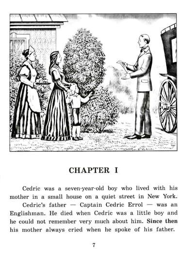 Это удивительная история о маленьком мальчике по имени Седрик, который волею судьбы стал единственным наследником богатого английского лорда. Прожив вместе с матерью в Америке первые семь лет жизни, он переехал к своему дедушке и оказался в мире чопорной английской аристократии. Своим простодушием, здравой рассудительностью и искренней добротой Седрик сумел согреть сердце строгого деда и сделать его жизнь лучше.