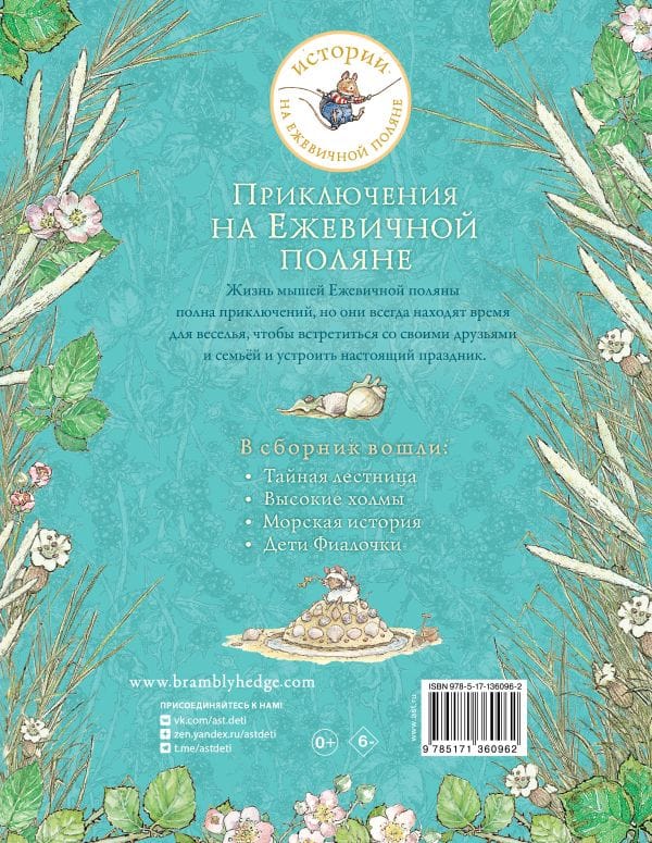 Забавные и трогательные истории о мышатах на Ежевичной поляне впервые были опубликованы в 1980 году. Автор Джилл Барклем долго изучала природу и быт Англии XIX века, прежде чем приступить к написанию книг. "Приключения на Ежевичной поляне" - это сборник, включающий в себя рассказы "Высокие холмы", "Дети Фиалочки", "Тайная лестница" и "Морская история".