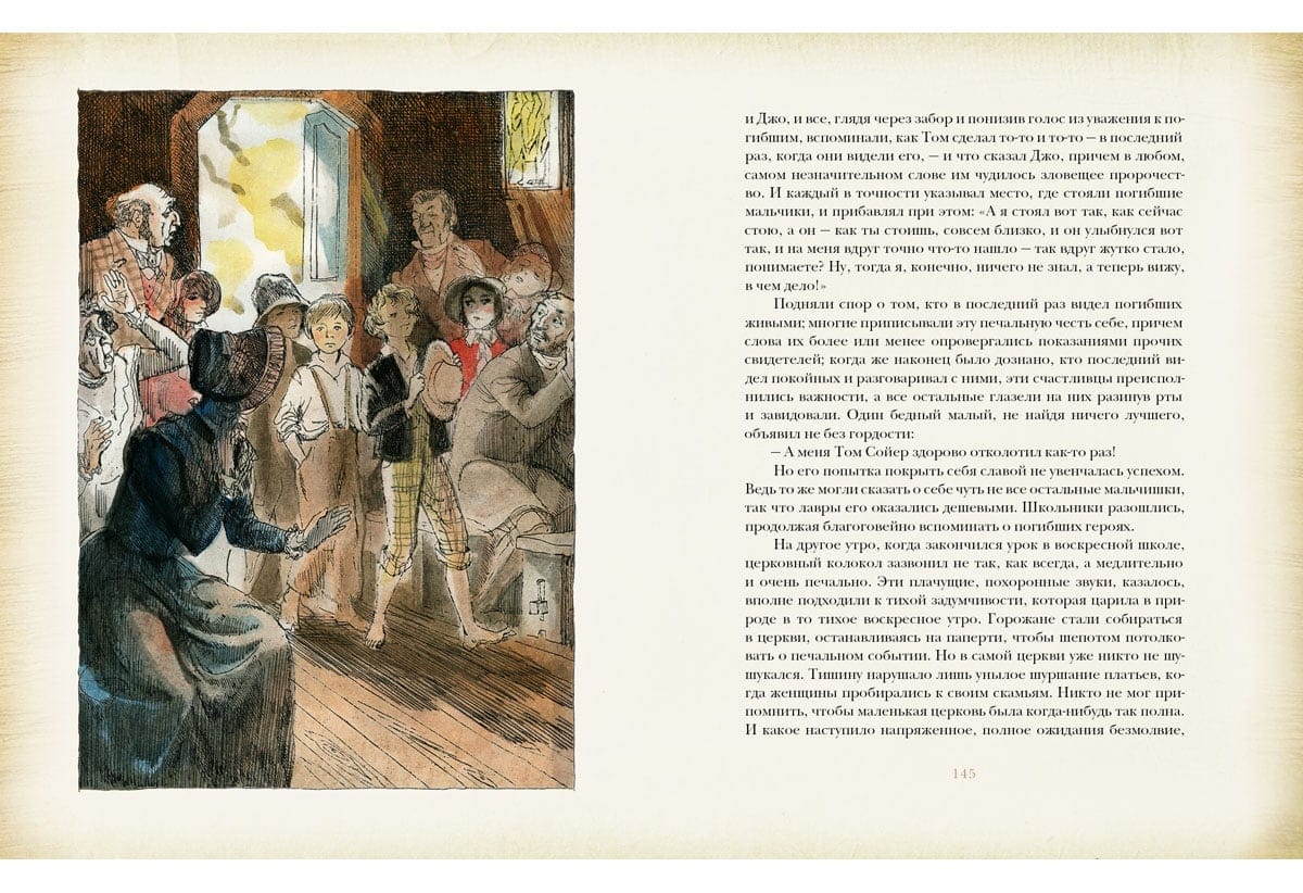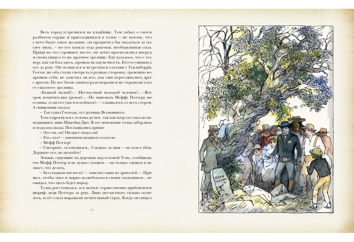 Перед вами знаменитый роман Марка Твена о приключениях веселого сорванца Тома Сойера и его друга Гекльберри Финна. Романтические приключения, живой юмор и неожиданные повороты сюжета захватят вас до последней страницы. Попутно вы познакомитесь с жизнью американского городка XIX столетия. А замечательные иллюстрации Германа Алексеевича Мазурина подарят вам прекрасное настроение.