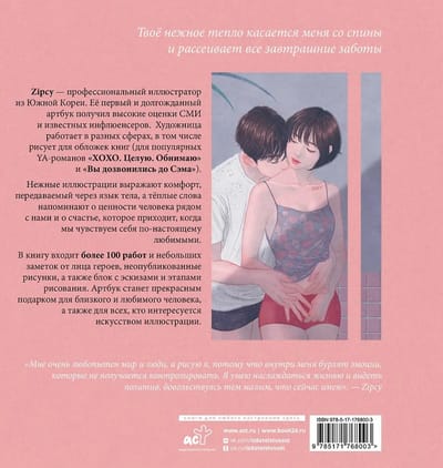 Нежные иллюстрации выражают комфорт, передаваемый через язык тела, а тёплые слова напоминают о ценности человека рядом с нами и о счастье, которое приходит, когда мы чувствуем себя по‑настоящему любимыми.
