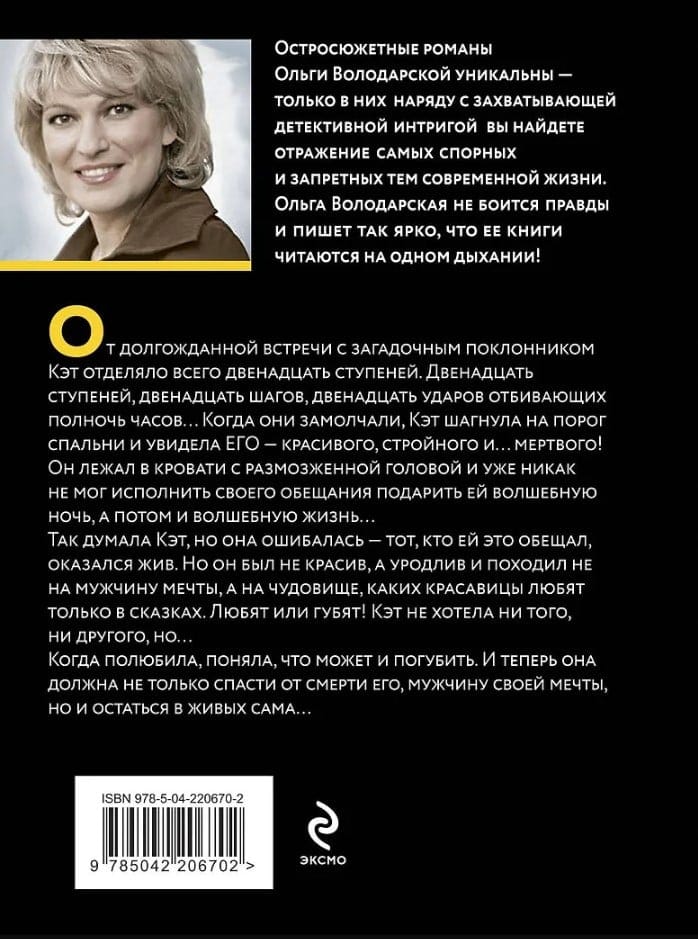 От долгожданной встречи с загадочным поклонником Кэт отделяло всего двенадцать ступеней. Двенадцать ступеней, двенадцать шагов, двенадцать ударов отбивающих полночь часов... Когда они замолчали, Кэт шагнула на порог спальни и увидела его — красивого, стройного и... мертвого! Он лежал в кровати с размозженной головой и уже никак не мог исполнить своего обещания подарить ей волшебную ночь, а потом и волшебную жизнь...
