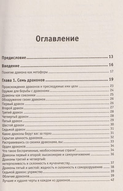 Главные герои этой книги — семь драконов, представляющие собой семь основанных на страхе поведенческих реакций человека. Стивенс построил их парами: дракон высокомерия стоит рядом с драконом самоуничижения, дракон нетерпеливости — с драконом мученичества, дракон жадности — с драконом саморазрушения, а последний, седьмой — дракон упрямства, — способен поладить с каждым из шести предыдущих. Все эти чудовища уже много веков держат человечество в своих лапах, мешая людям жить полноценной жизнью. Они хитры и коварны и хорошо прячутся у нас в душе, чтобы творить свои темные дела исподтишка и не дать себя обнаружить. Однако Хосе Стивенс знает, как их найти и обезвредить. В этой книге он дает оружие, благодаря которому вы сможете приручить своих драконов и использовать силу этих мистических существ.
