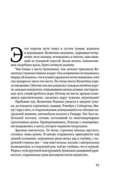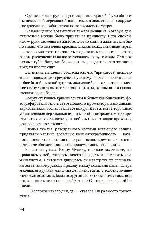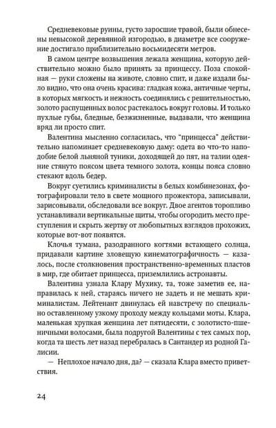 После успеха «Скрытой бухты» Мария Орунья продолжила детективный цикл про инспектора Валентину Редондо и англичанина Оливера Гордона, перебравшегося жить в Кантабрию после личной драмы. Действие нового романа снова развивается в окрестностях городка Суансес и виллы «Марина». Жители еще не оправились от серии убийств, случившихся несколько месяцев назад, как одним ранним утром в древних руинах найдено тело молодой женщины, лежащей в позе Спящей красавицы и облаченной в изысканный наряд средневековой дамы. В ладони «принцесса» сжимает старинную монету. Результаты вскрытия ошеломляют: не могла же покойница и в самом деле прибыть прямиком из Средневековья? Но не успевает пресса подхватить и раздуть сенсацию, выдвинув глупую идею об убийце, путешествующем во времени, как найдено еще одно тело. И Валентина Редондо приступает к расследованию. Навстречу ее команде движется вроде бы совсем другим путем Оливер Гордон, пытающийся отыскать своего брата, от которого нет вестей уже несколько лет. Два расследования встретятся в одной точке, и правда окажется странной и шокирующей. Новый кантабрийский нуар в окружении поразительных по красоте пейзажей севера Испании.