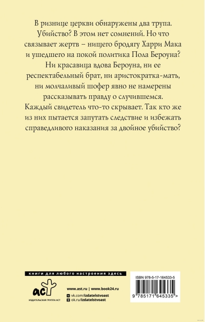 В ризнице церкви обнаружены два трупа. Убийство? В этом нет сомнений. Но что связывает жертв – нищего бродягу Харри Мака и ушедшего на покой политика Пола Бероуна?