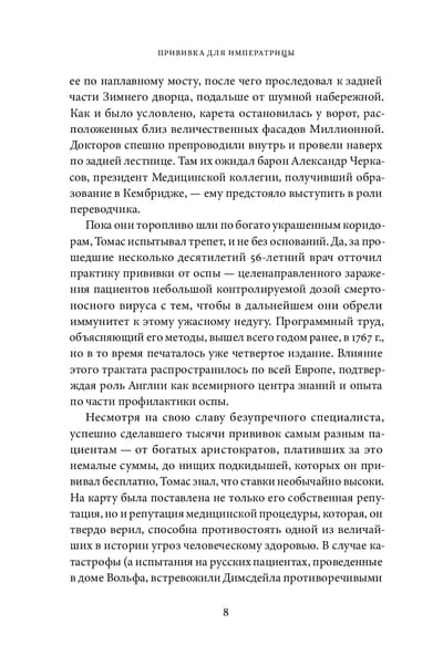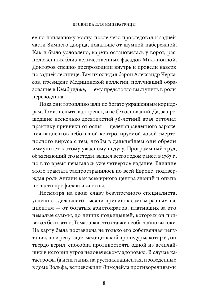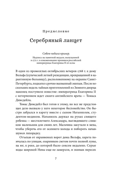 В XVIII в. «пятнистое чудовище», смертоносный вирус оспы, опустошало Европу, и императрица хорошо понимала угрозу, которую эпидемия несла России. Первая массовая кампания по оспопрививанию в России, с успехом проведенная Димсдейлом, заложила основу для современных практик вакцинации.