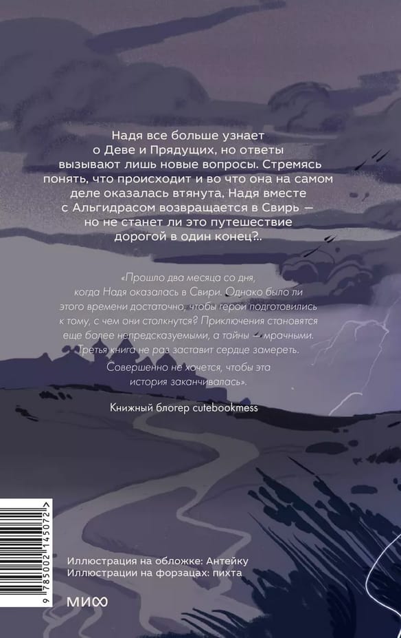 Надя все больше узнаёт о Деве и Прядущих, но ответы вызывают лишь новые вопросы. Стремясь понять, что происходит и во что она на самом деле оказалась втянута, Надя вместе с Альгидрасом возвращается в Свирь — но не станет ли это путешествие дорогой в один конец?..