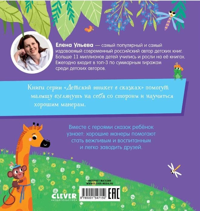 Сборник коротких историй «Про хорошие манеры» — сказкотерапия от популярного детского писателя Елены Ульевой. Книга понравится малышам, а родителям поможет обсудить с ребенком важные темы — вежливость, уважение к другим, дружба.