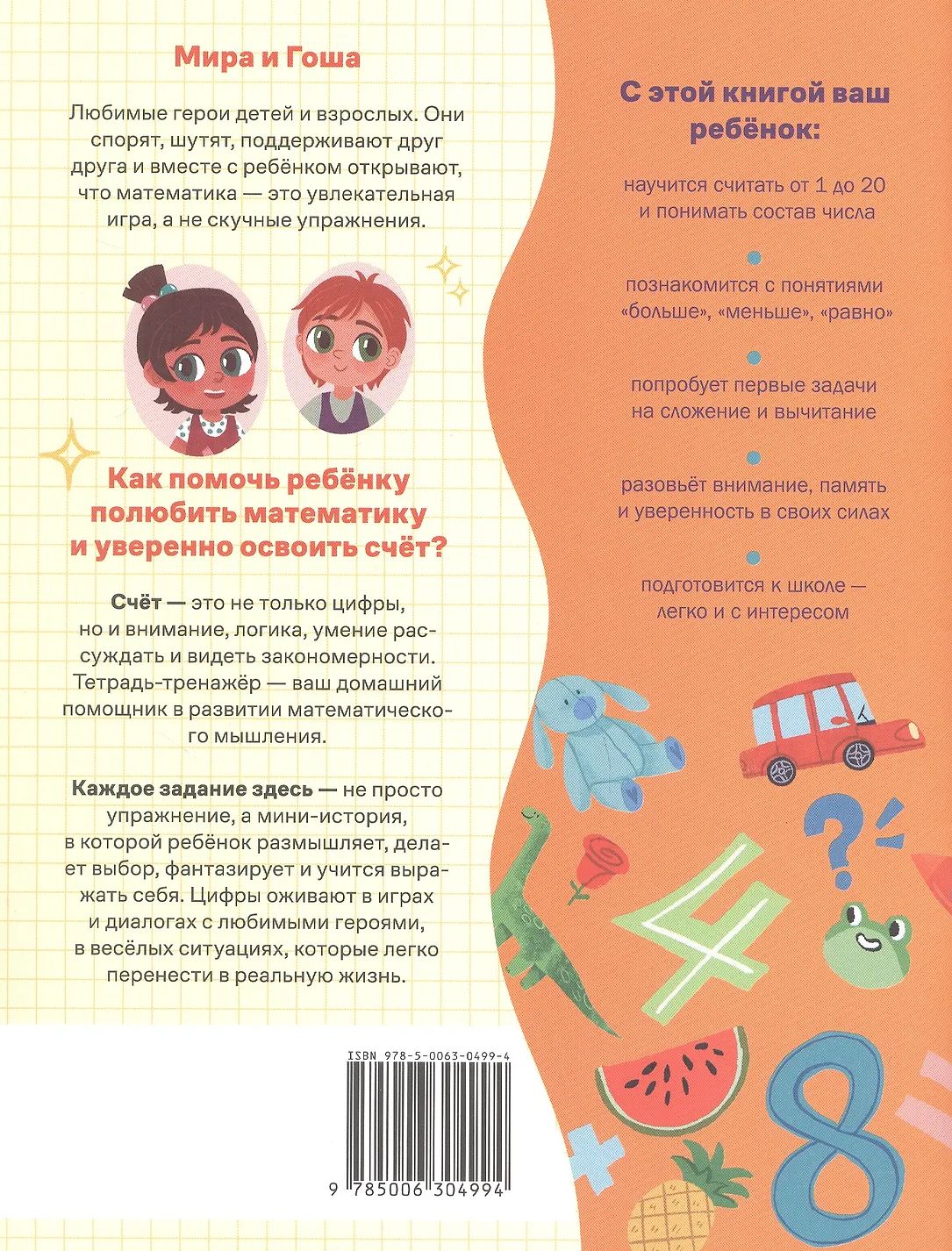 Скучные упражнения убивают интерес к учёбе. В этой тетради всё по-другому: Мира и Гоша вовлекают ребёнка в историю, где цифры становятся понятными.