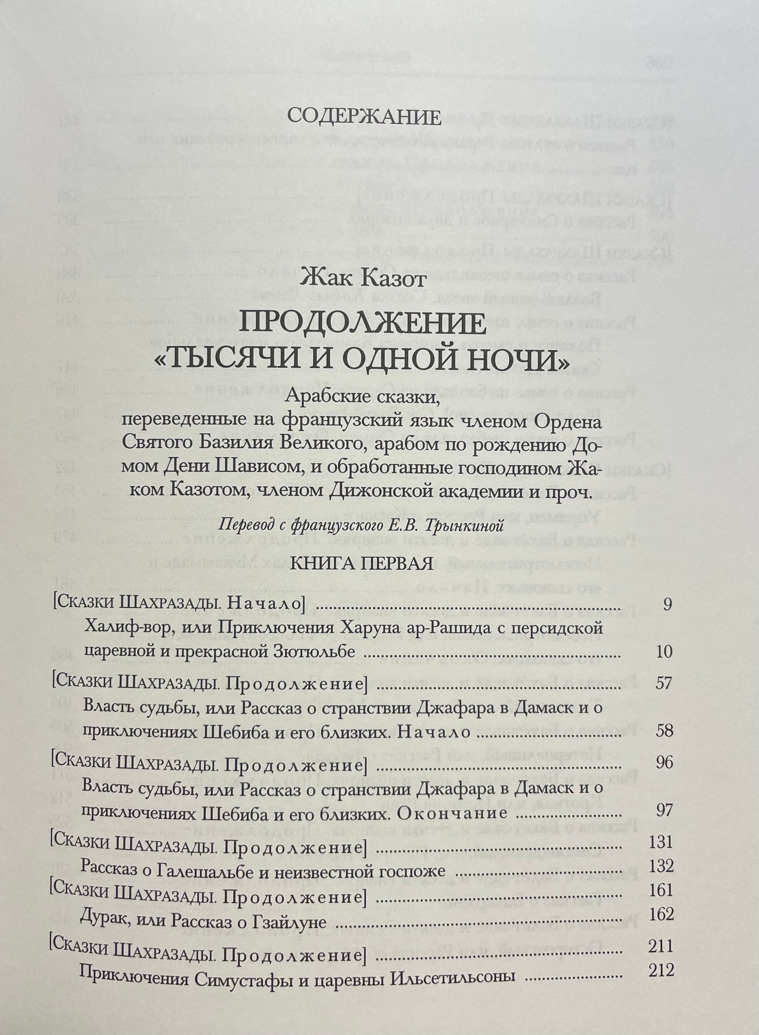 «Продолжение «Тысячи и одной ночи» (1788—1789 годы) — последнее произведение Жака Казота (1719 — 1792), французского писателя, мистика, каббалиста и мартиниста, обладавшего, как полагали современники, даром предвидения. В России он приобрел популярность благодаря известному готико-фантастическому роману-сказке «Влюблённый дьявол» (опубликован в 1772 году; в 1967 году вышел в серии «Литературные памятники» в составе сборника «Фантастические повести»).