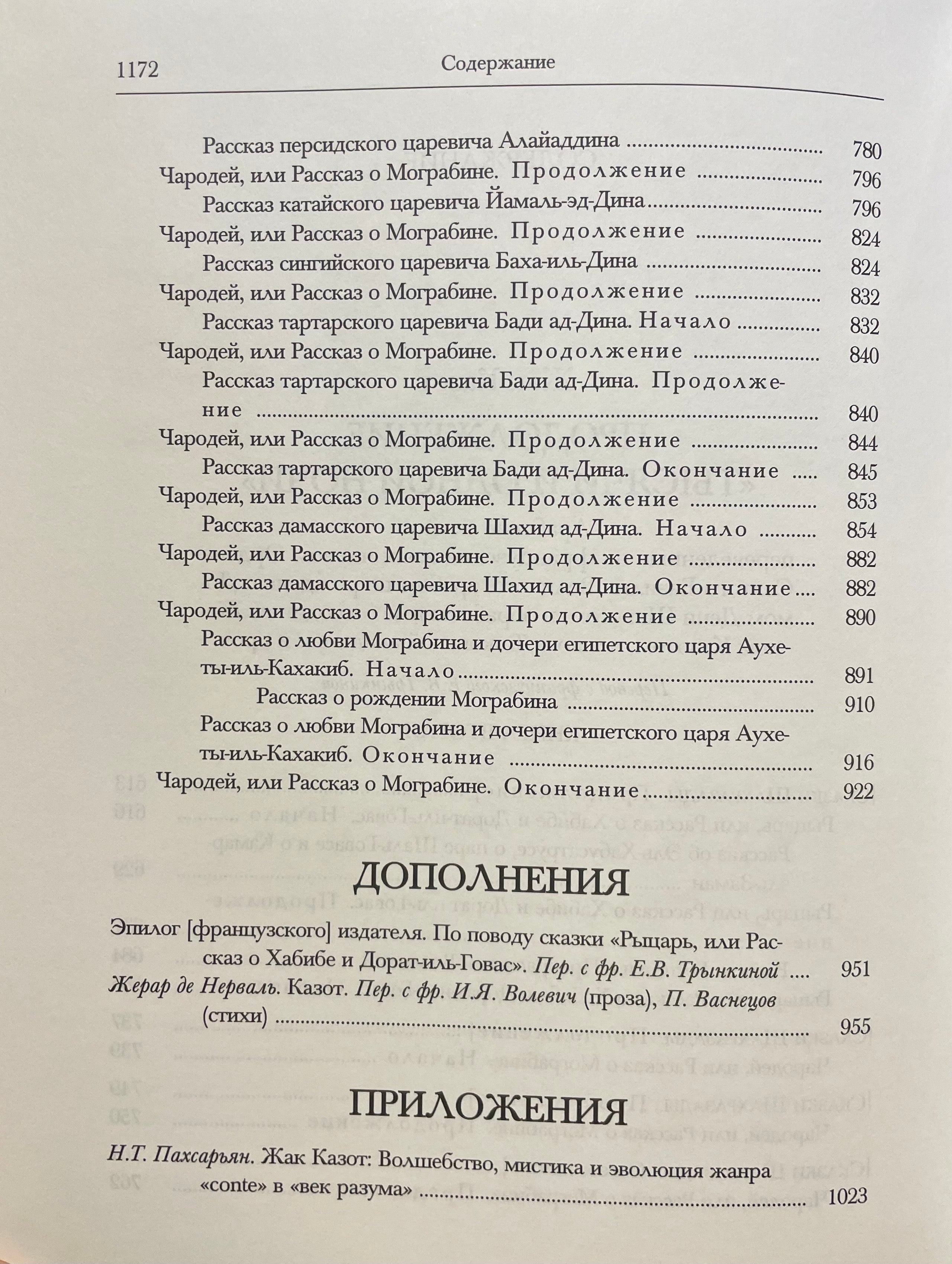 С появлением на европейских языках новых переводов различных версий «Тысячи и одной ночи» о сочинении Казота постепенно забыли. Настоящее издание призвано восполнить эту лакуну. В данном сборнике воспроизведены замечательные иллюстрации Клеман-Пьера Марилье (1740—1808), созданные им к сказкам Казота в рамках цикла иллюстраций к знаменитому французскому многотомному своду «Кабинет фей» (1785—1789). Помимо сказок Казота, в книге публикуется очерк о нём Жерара де Нерваля (1808—1855), сопровождённый классическими гравюрами Эдуарда де Бомона (1821—1888).