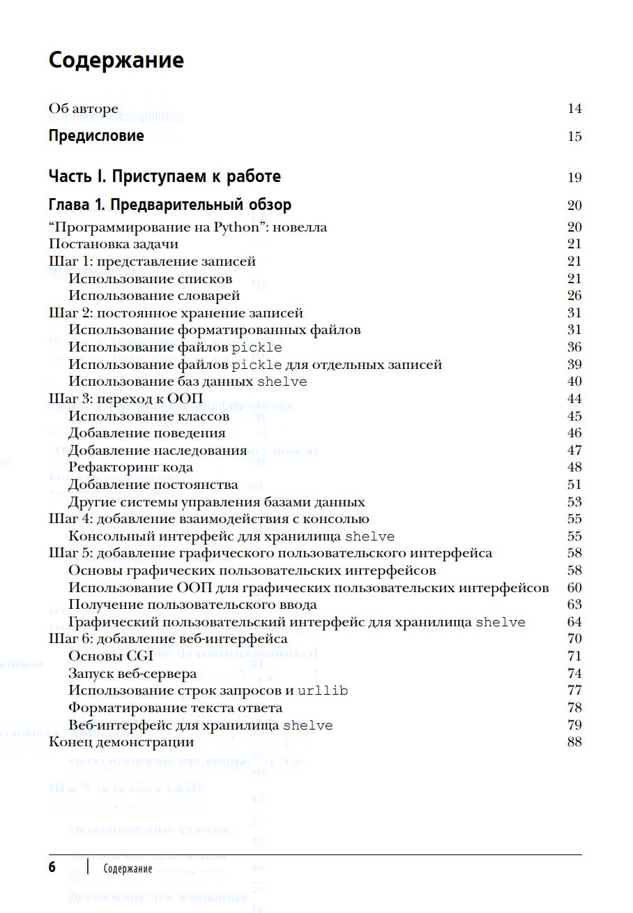 Вы изучите синтаксис языка и методы программирования на множестве примеров, которые иллюстрируют правильное использование и общепринятые идиомы. Книга обновлена с учетом версии языка Python 3.x, который демонстрируется в качестве инструмента разработки программного обеспечения в многочисленных примерах кода, подобранных специально для этой цели.