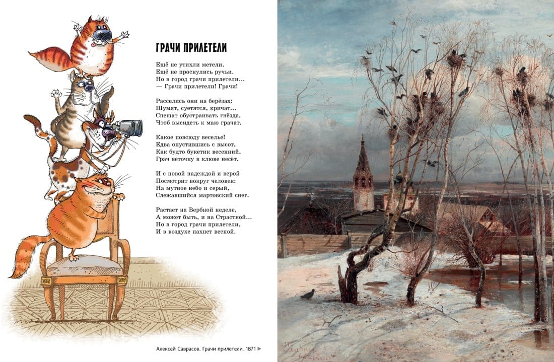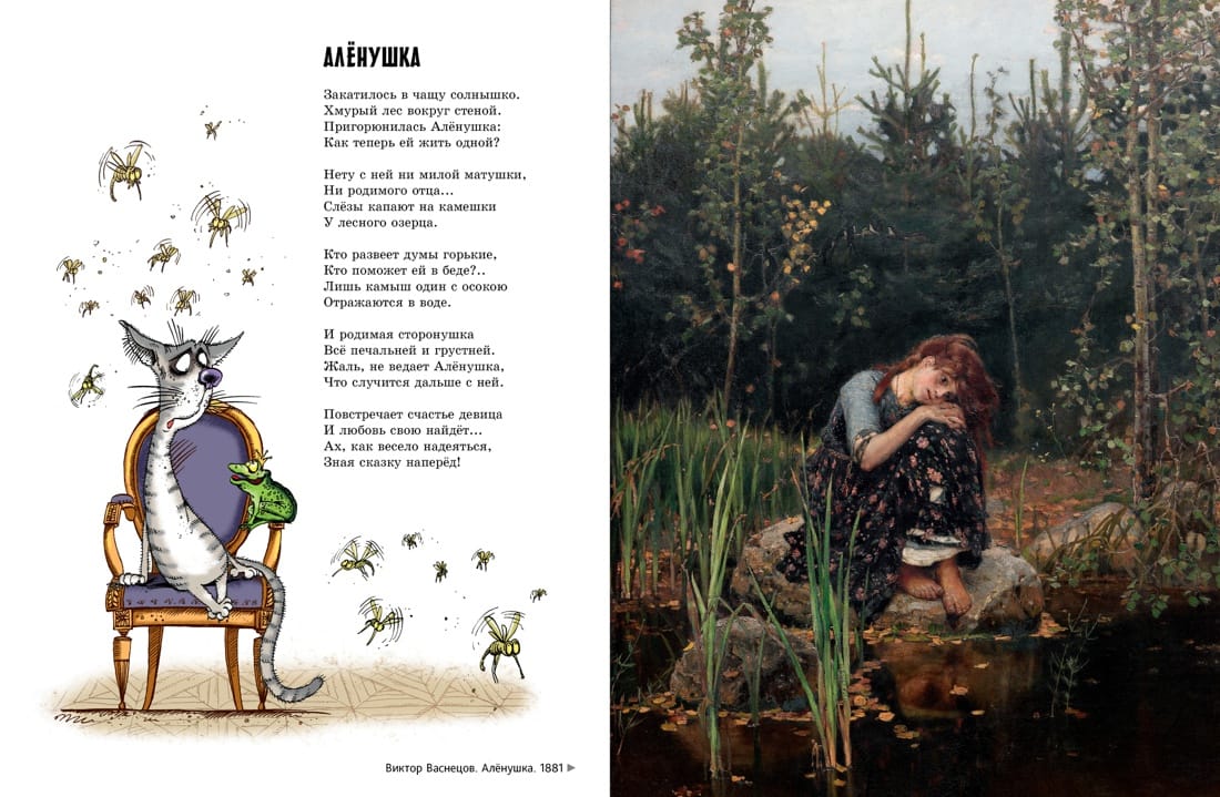 Прогулки бывают разные. Очень приятно бывает пройтись по парку или, скажем, побродить вдоль берега моря. А вы не пробовали погулять по большому музею вроде Третьяковской галереи? Не сомневайтесь: вы отлично проведёте время, особенно если компанию вам составит знаток и тонкий ценитель искусства профессор АУ. Он с удовольствием расскажет вам о каждой картине — и не просто так, а в стихах. А заодно вы познакомитесь с большими любителями живописи — симпатичными музейными котами, которых нарисовала замечательная художница Елена Гозман.