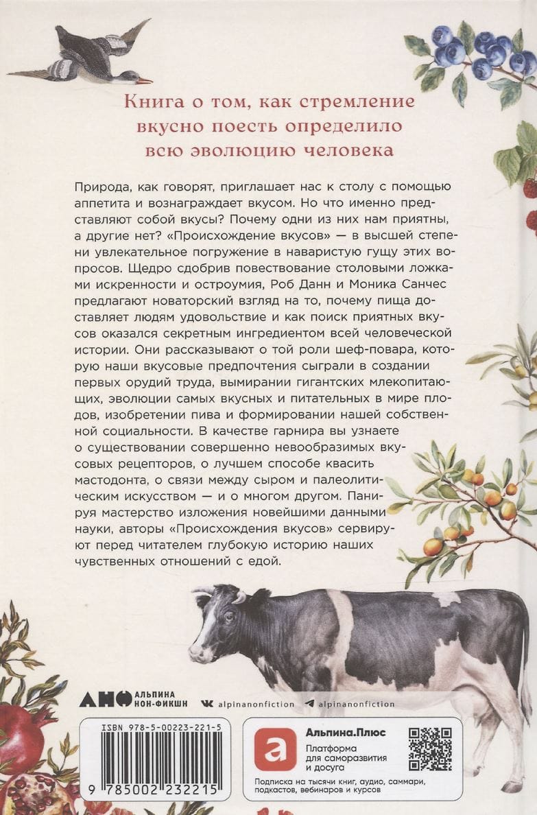 Вы узнаете о роли вкусовых предпочтений в создании первых орудий труда и вымирании гигантских млекопитающих, об эволюции самых аппетитных и питательных плодов и о формировании нашей социальности. А на десерт вам предложат лучший способ квасить мастодонта, рассказ о связи сыра с палеолитическим искусством — и много чего еще.