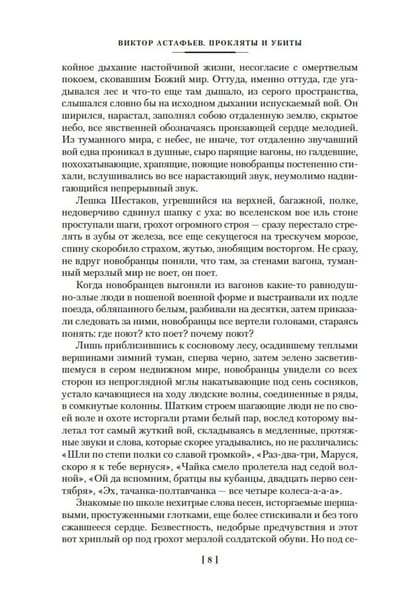 В 1942 году восемнадцатилетним юношей Виктор Астафьев ушел добровольцем на фронт. Служил на передовой, перенес несколько тяжелых ранений, был награжден орденом Красной Звезды и медалью «За отвагу», демобилизовался в 1945 году в звании «рядовой». Война, увиденная глазами простого солдата — одного из сотен тысяч, в нечеловеческих условиях ежедневно сражающихся со смертью, — центральная тема в творчестве выдающегося русского писателя Виктора Астафьева. Роман «Прокляты и убиты» — итог многолетних размышлений и одно из самых драматичных, трагических и правдивых повествований о войне как «преступлении против разума». Пронзительная откровенность писателя, его бескомпромиссное нежелание скрывать «неудобные» факты и приукрашивать суровую правду, предавая собственные воспоминания и память павших, завоевали произведениям Астафьева любовь миллионов читателей.