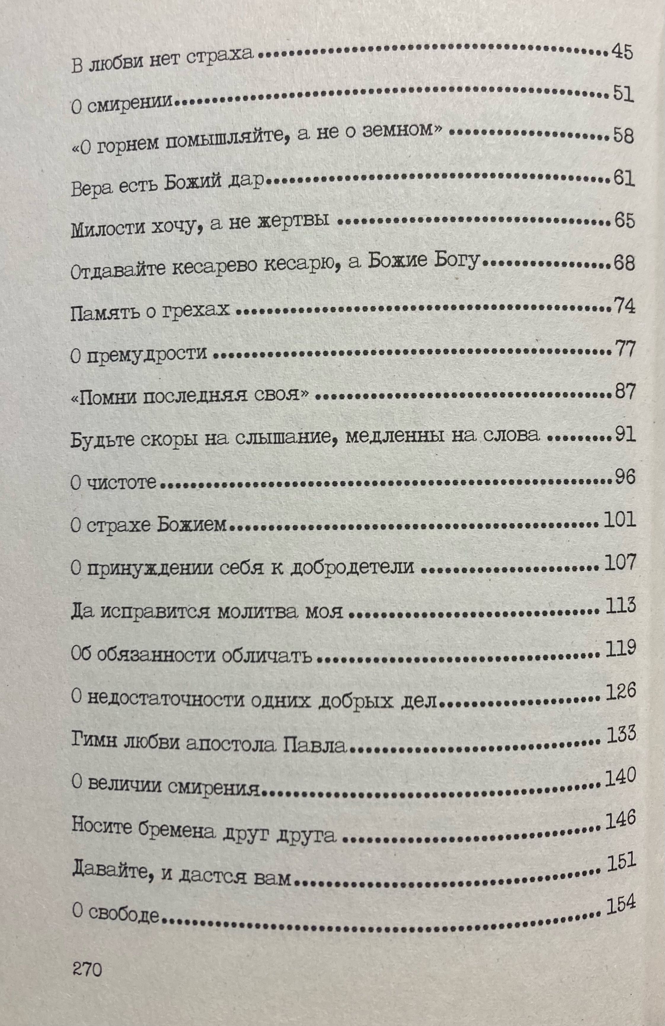 В первую книгу вошли избранные проповеди, посвященные темам, связанным с болезнями души и тела. Во вторую книгу — избранные проповеди, посвященные добродетелям. В третью — избранные проповеди, посвященные борьбе со страстями.