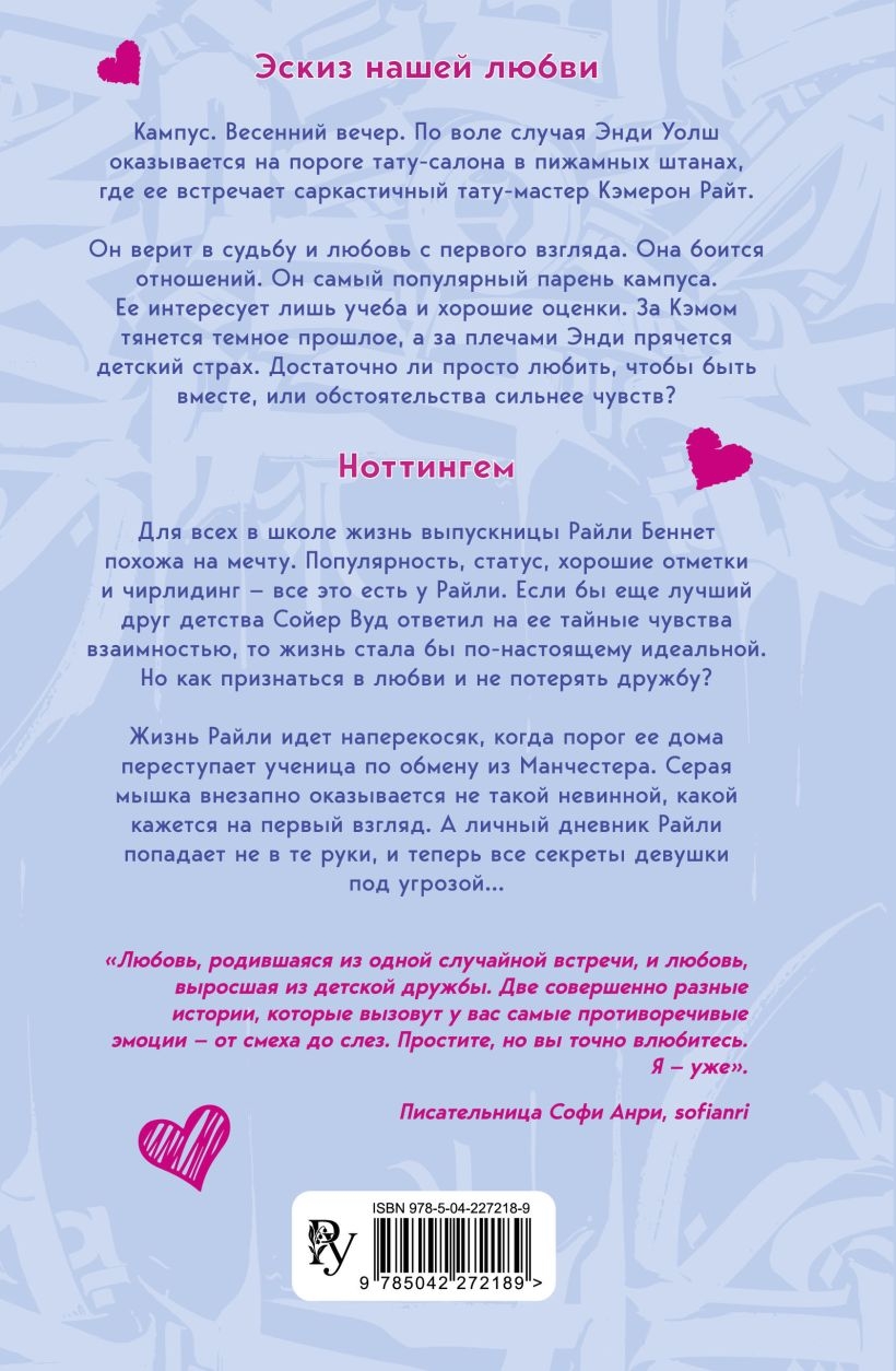 Любимые романы Лины Винчестер теперь под одной обложкой в подарочном оформлении! «Эскиз нашей любви» — история чувств робкой студентки и беззастенчивого тату-мастера с искрометным юмором. «Ноттингем» — роман о популярной чирлидерше, безответно влюбленной в своего лучшего друга.