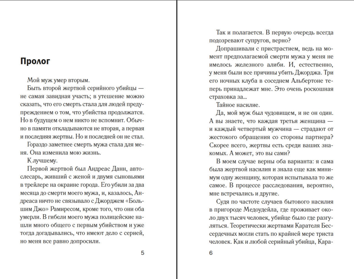 А вы знали, что каждая третья женщина и каждый четвертый мужчина страдают от жестокого обращения со стороны партнера? Эту страшную статистику на собственном опыте приходится проверить нескольким жительницам фешенебельного пригорода Медоудейл. У каждой своя история, но у всех общая беда: мужья-тираны. Защититься от них невозможно, попытки сбежать приводят лишь к новым зверским расправам. Кажется, выхода нет, но внезапно жестоких мужей начинают убивать одного за другим. В полиции загадочного преступника называют Карателем Бессердечных: застрелив жертву, он складывает покойнику руки на груди, словно тот просит прощения. Кто же мстит за несчастных женщин?