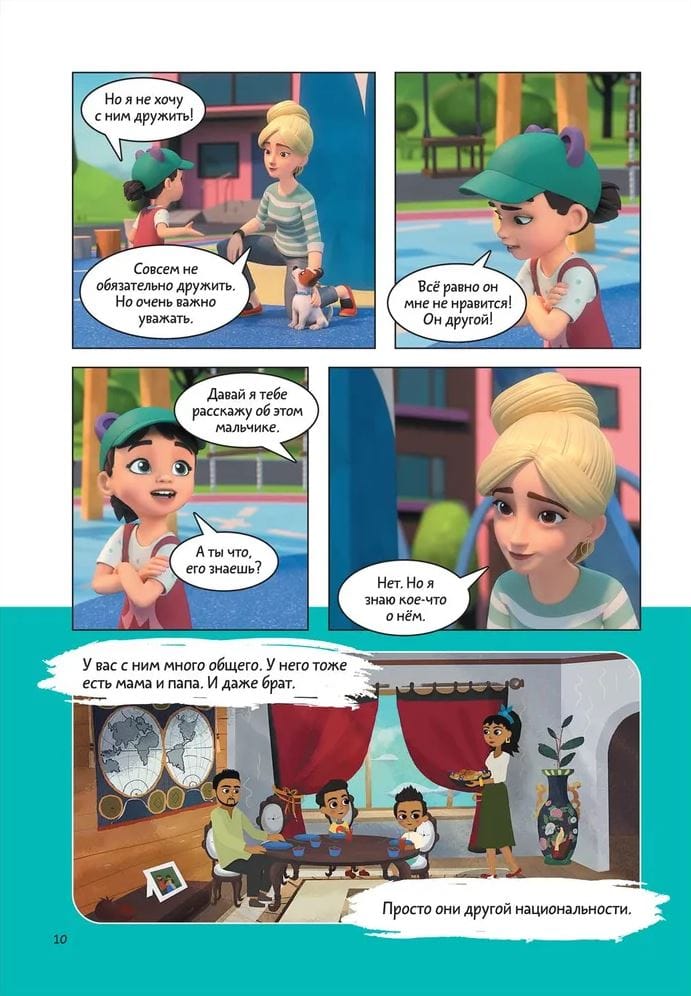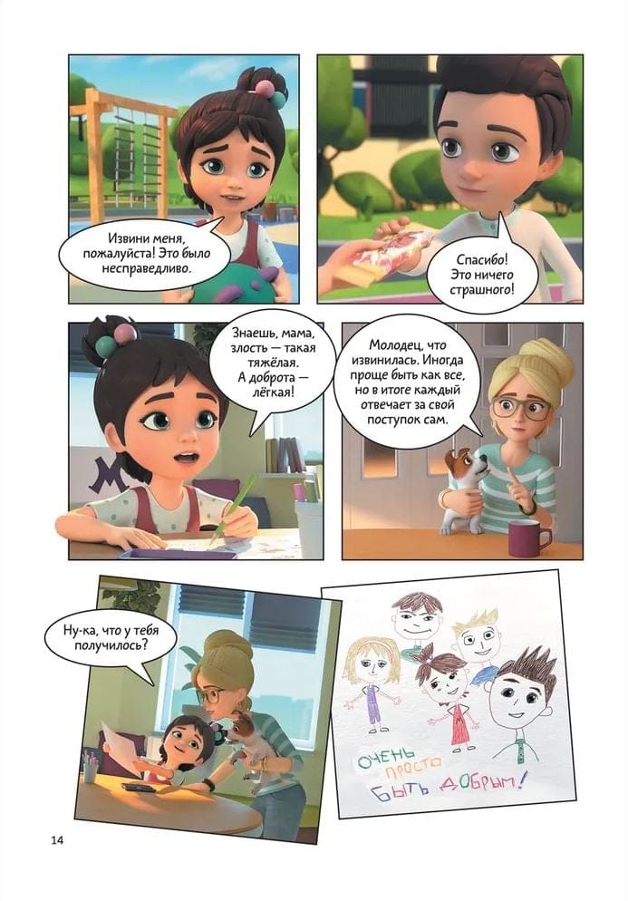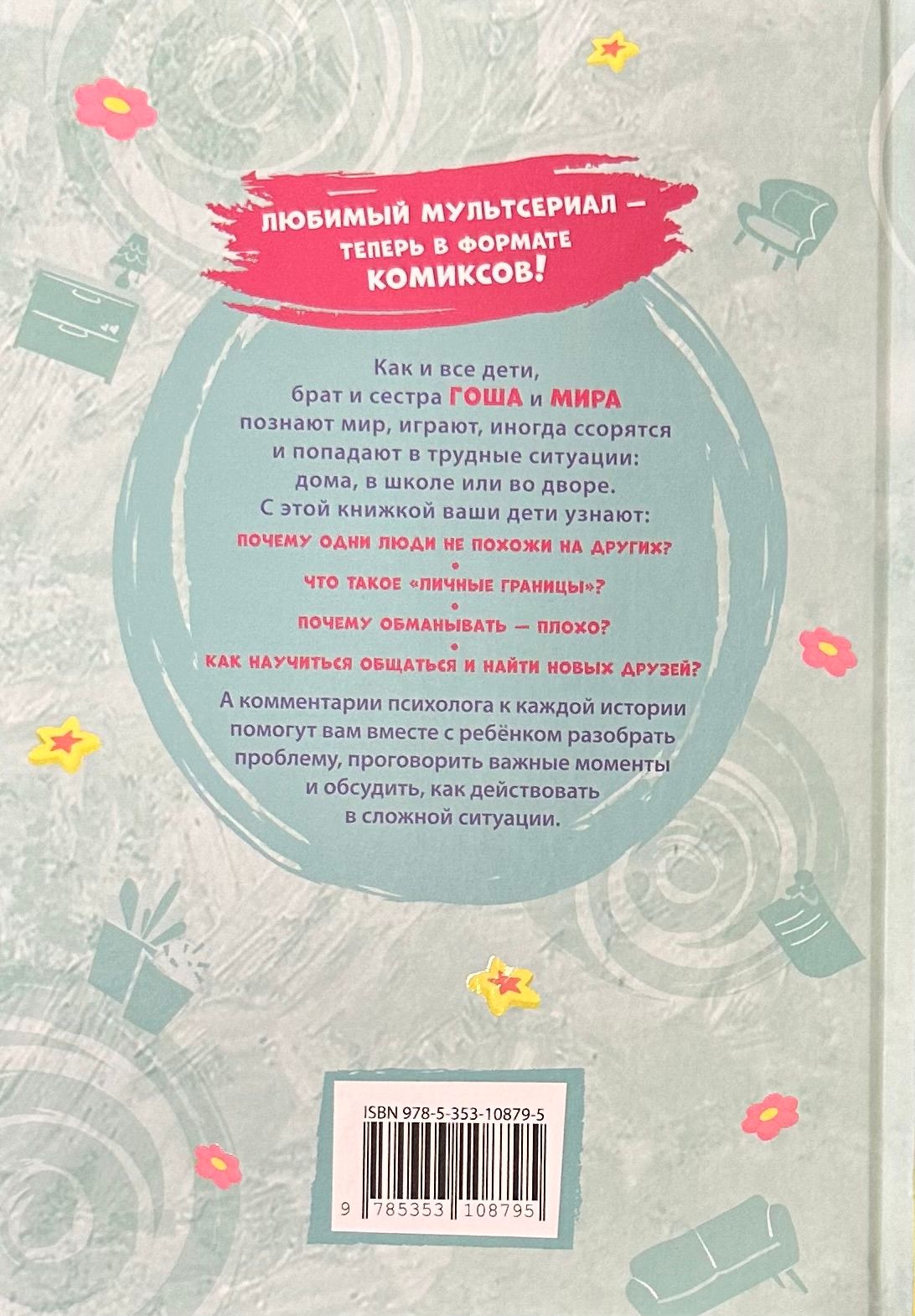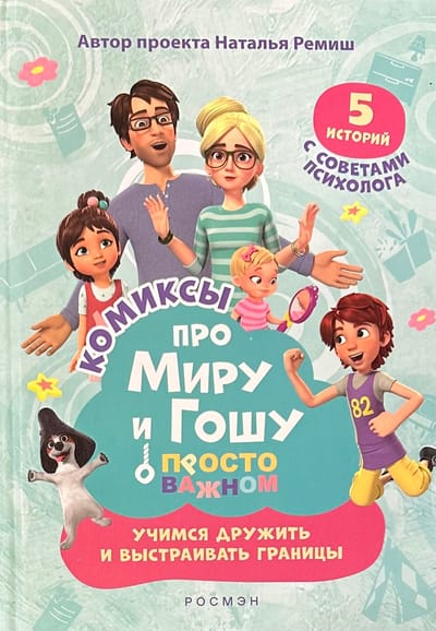 Серия комиксов «Про Миру и Гошу» — это герои любимого мультсериала, которые учатся взаимодействию с окружающим миром и собой. В каждом комиксе размещено 5 историй, связанных одной темой: управление эмоциями, дружба и выстраивание личных границ или создание теплых отношений с близкими. В конце каждой истории размещены комментарии психолога.