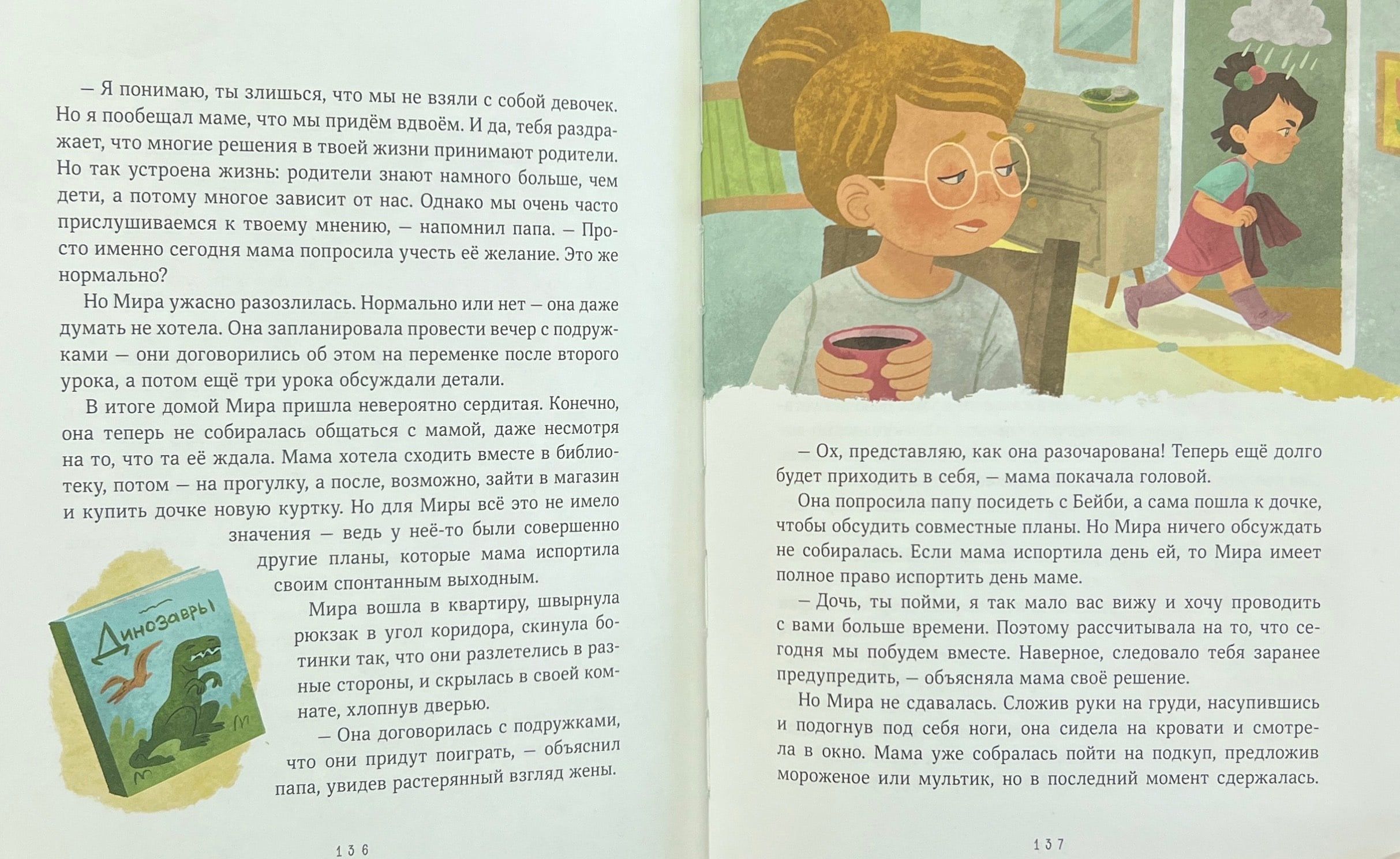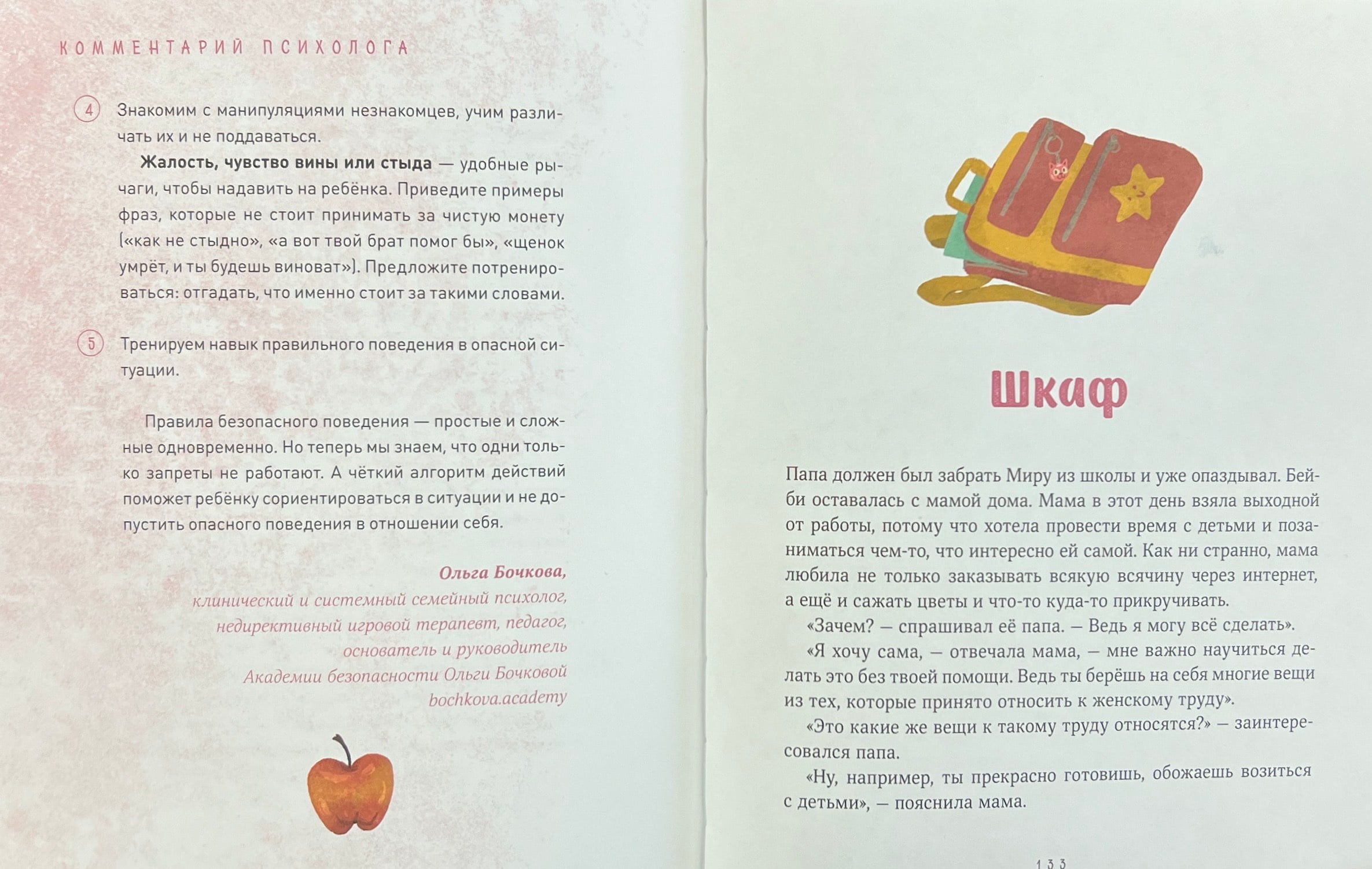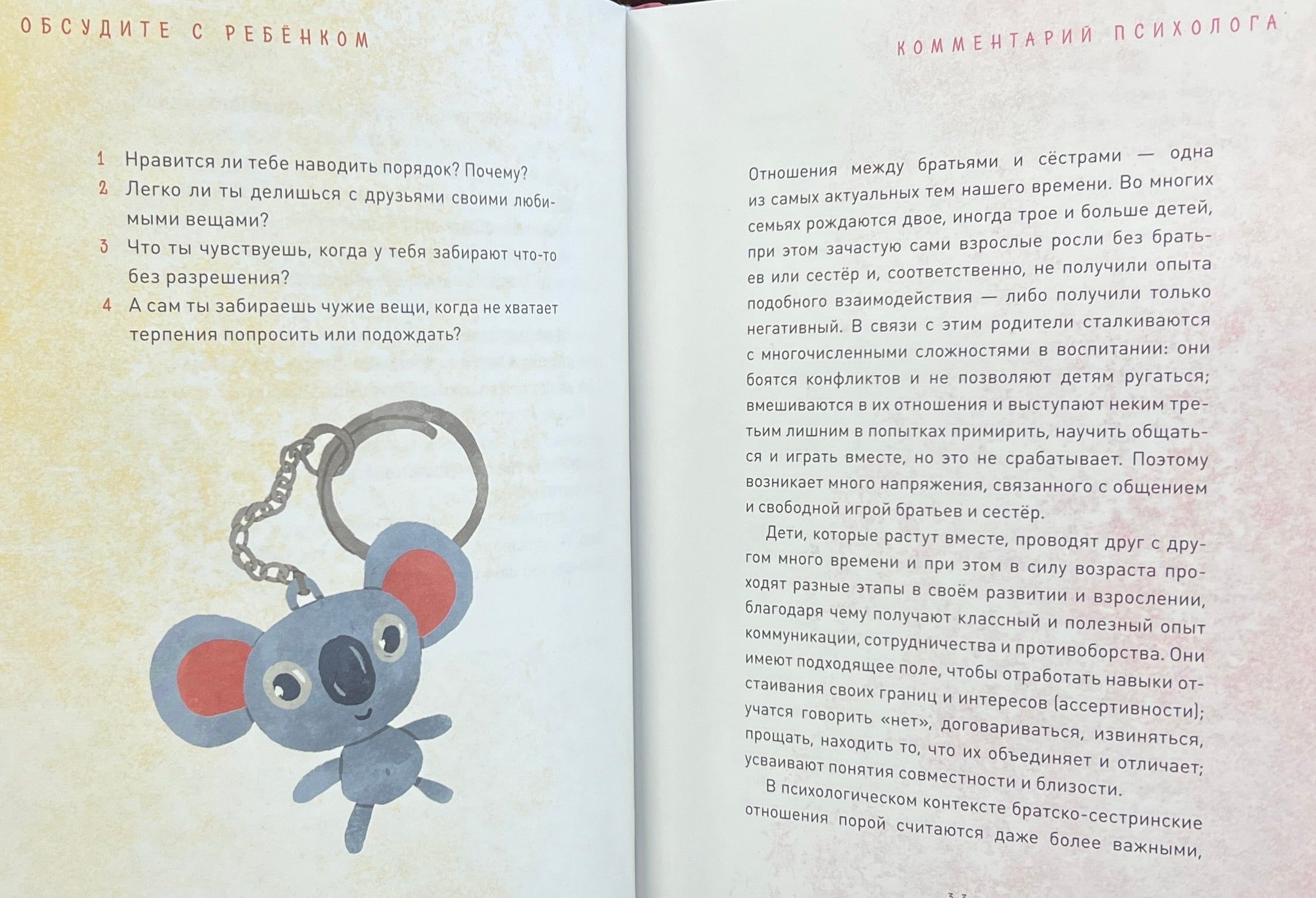 В книге вы найдёте ответы на эти и многие другие вопросы. Прочитайте ребёнку истории про Гошу, Миру и маленькую Бейби, а потом обсудите их, чтобы лучше понять друг друга и разобраться в собственных эмоциях и чувствах. В конце каждого рассказа есть комментарии и советы психологов, как лучше поставить в той или иной ситуации. «‎На многие вопросы про взаимоотношения и эмоции мы, взрослые, не знаем ответов. Когда мы были детьми, мы не получили эти ответы от своих родителей, и теперь живем с ощущением, что решения нет. Но на самом деле, любую сложную тему можно и важно обсудить, и вероятнее всего она станет понятнее и проще. Тогда между вами и детьми наступит понимание, вы установите правила, к которым можно будет обращаться, если кто-то из вас забыл о договоренностях. В этой книге есть подсказки, как можно такой разговор провести»‎ Наталья Ремиш.