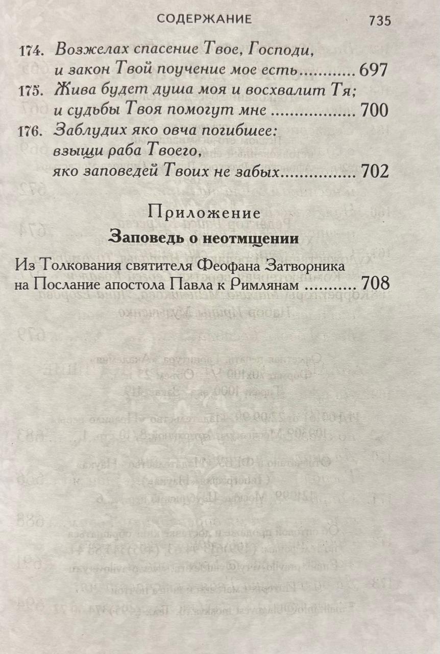 Сто восемнадцатый псаолм — особенное произведение, которое положено читать на каждой повседневной полунощнице. По оценке блаженного Феодорита, «псалма сего достаточно к тому, чтобы желающих совершенной добродетели усовершить в ней, живущих в рассеянии возбудить к тщанию, упадающих в духе воодушевить, нерадивых исправить — одним словом, против различных человеческих немощей дать всякого рода врачевство».Толкование Псалма Давида 118-го святителем Феофаном Затворником глубоко назидательно. Подобно древним святым отцам и учителям Церкви преосвященный Феофан постоянно преподает читателям нравственные уроки, вводит в созерцание и оценку различных состояний внутренней духовной жизни христианина. Это живая проповедь о путях к нравственному совершенству.
