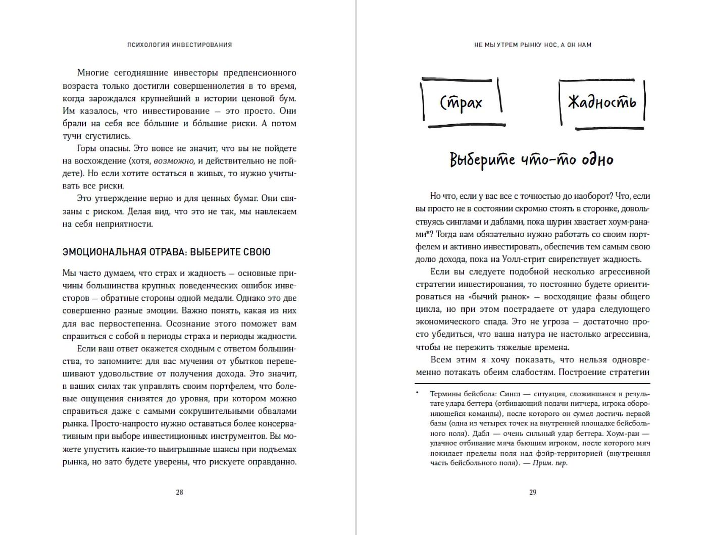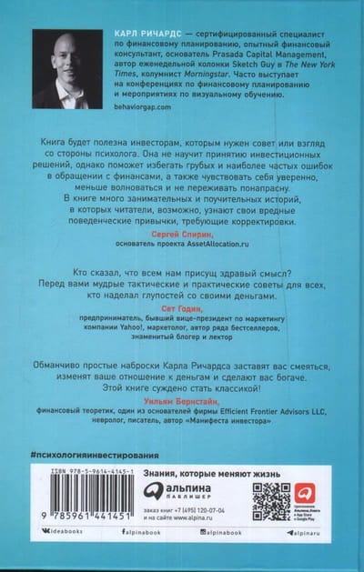 Если вы хотите стать успешным инвестором, вы должны знать в лицо своих внутренних врагов: сомнение, панику, страх, нетерпение, желание копировать других, жадность, гнев. Не сумев справиться или договориться с ними, вы обязательно проиграете и потеряете деньги. Эмоции заложены в нас природой, но человек отличается от животного тем, что умеет их обуздать. Опытный инвестиционный консультант и блестящий визуализатор Карл Ричардс помогает найти ответы на важные вопросы: как не терять самообладания; как правильно распределять активы и энергию — где сэкономить, а куда вложить как можно больше. Из его книги вы узнаете, как избегать ловушек, поджидающих новичков и профессионалов; осознаете, достижима ли желаемая цель; сможете улучшить и упростить свои отношения с финансами. Большинство советов автор иллюстрирует набросками «на салфетках». Эти простые, понятные и прекрасно запоминающиеся схемки отлично помогают усвоить сложные финансовые концепции — недаром они снискали их автору любовь сотен тысяч читателей его книг, блога и еженедельной колонки Sketch Guy в The New York Times.
