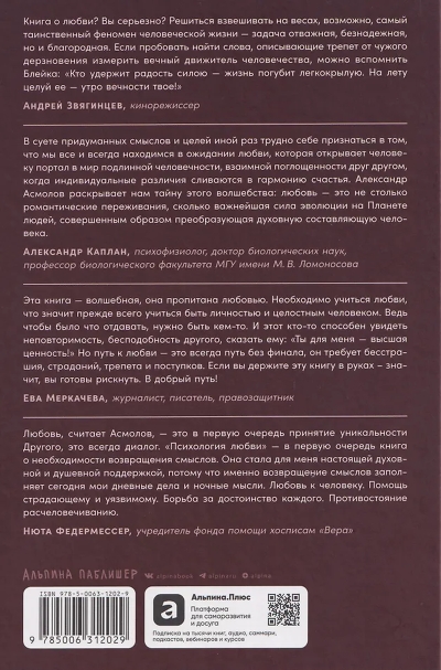 Александр Асмолов, выдающийся российский психолог, заслуженный профессор, заведующий кафедрой психологии личности Московского государственного университета, научный руководитель Московского института Психоанализа и автор бестселлера «Психология достоинства: Искусство быть человеком», ведет разговор о любви как переизобретении жизни, необходимом опыте полноты переживания своего времени и вечности во времени.