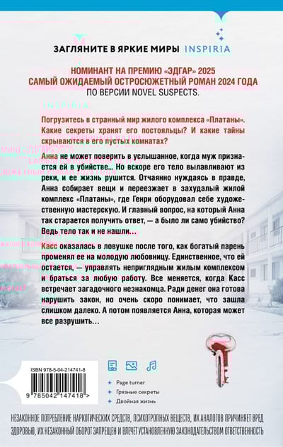 Анна не может поверить в услышанное, когда муж признается ей в убийстве.... Но вскоре его тело вылавливают из реки, и ее жизнь рушится. Отчаянно нуждаясь в правде, Анна собирает вещи и переезжает в захудалый жилой комплекс «Платаны», где Генри оборудовал себе художественную мастерскую. И главный вопрос, на который Анна так старается получить ответ, - а было ли само убийство? Ведь тело так и не нашли…
