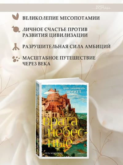 В первом томе «Потерянный рай» бессмертный целитель Ноам пережил всемирный потоп, в дальнейшем ему предстоит увидеть и Древний Египет, и Ренессанс, и индустриальную революцию, а пока в поисках своей бессмертной возлюбленной — невероятной Нуры, единственной на все тысячелетия, — он приходит в Месопотамию, где человечество изобрело сохранившийся и поныне способ жить сообща. Крупные города вместо мелких деревень; укрощение рек и ирригация вместо деликатного и смиренного поклонения Природе; изобретение астрономии и письма — на глазах у вечного скитальца творится тот самый прогресс, ради которого человечество жертвует собой с начала своей истории. И венец этого прогресса — Башня до небес, до самого обиталища богов, которую возводят рабы по приказу царя Нимрода. Целитель вхож в любые дома — к рабам и к царице Кубабе, к придворному астрологу и к пастуху Авраму, — и перед нами во всех подробностях распахивается головокружительная эпоха, от которой человечество так много унаследовало.