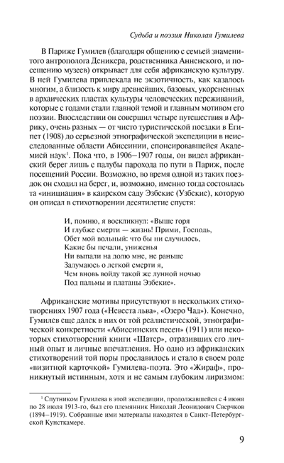 В книгу вошли не только известные стихотворения Николая Гумилёва (1886—1921), но и стихи из его ранних сборников, в частности, «Пути конквистадоров», в котором уже зазвучали узнаваемые ноты авторского голоса. Поэзия Гумилёва полна ярких образов, вдохновленных путешествиями, приключениями и жаждой открытия. В стихах ощущается дух странствий, тоска по неизведанному и бесстрашное стремление к познанию жизни во всех её проявлениях.